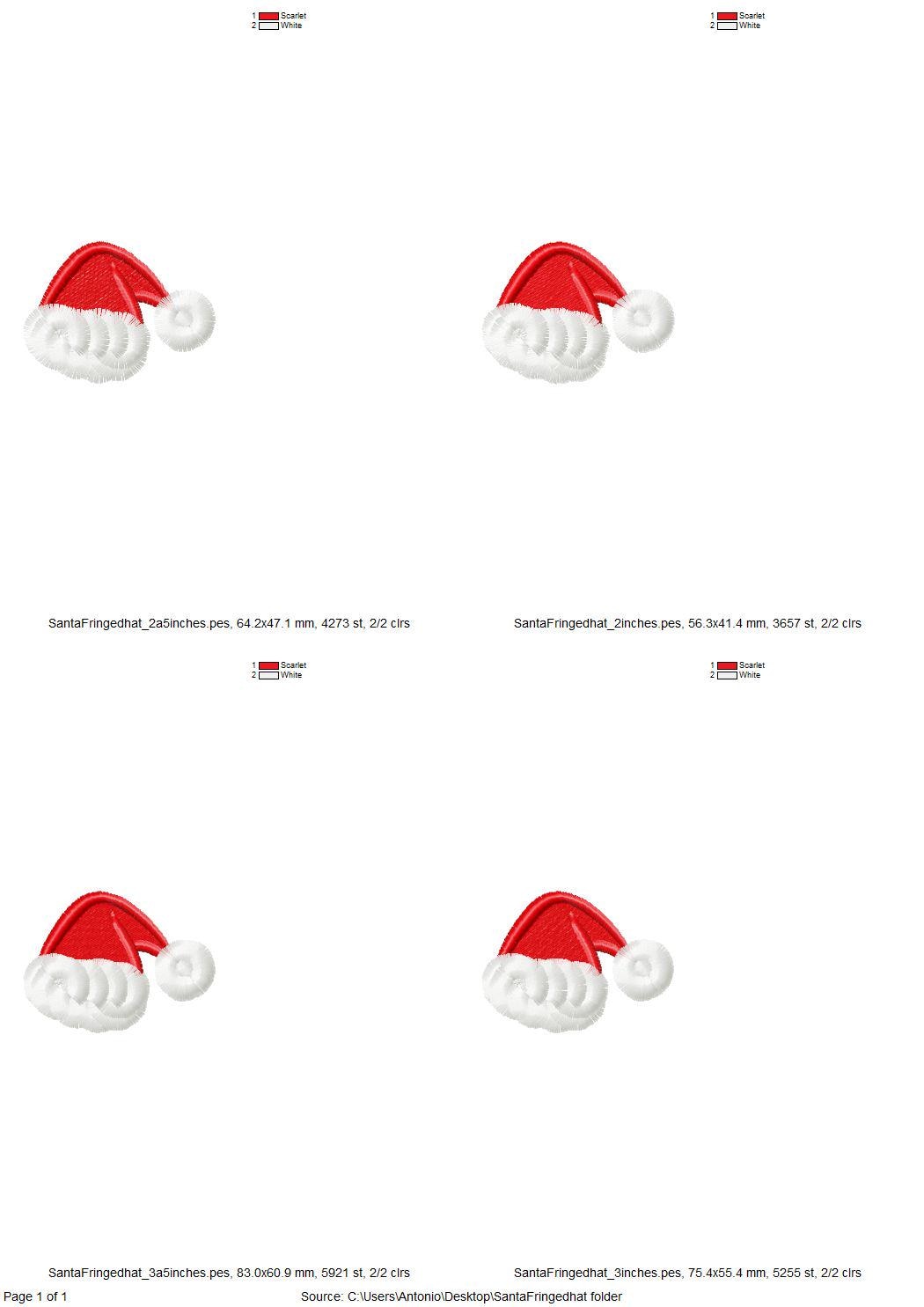Small Mini Santa hat fringed fluffy Christmas machine embroidery