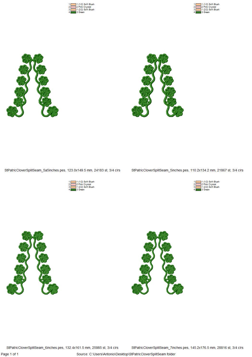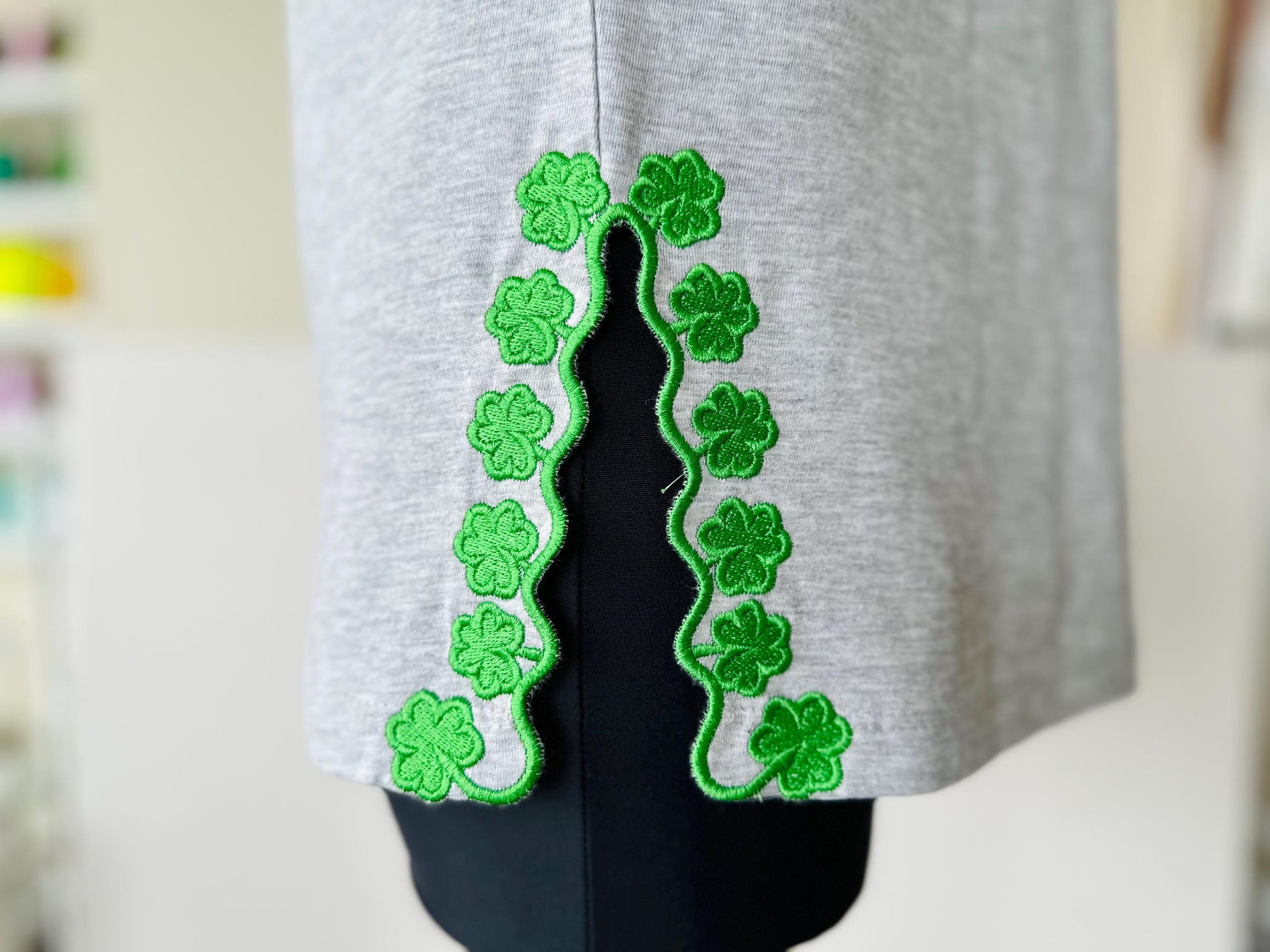Smarock Clover scallop edge side bow split seam machine embroidery designs St Patricks Day Flower floral girls outfit t-shirt sweatshirt