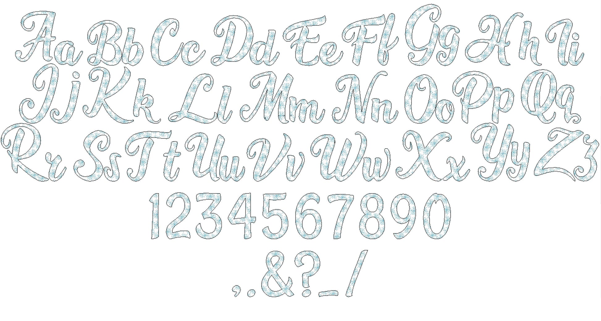 Snow Font light sketch outline machine embroidery font alphabet letters 2, 3, 3.5, 4, 5, 6 in, BX, vp3, xxx, pes & other embroidery formats