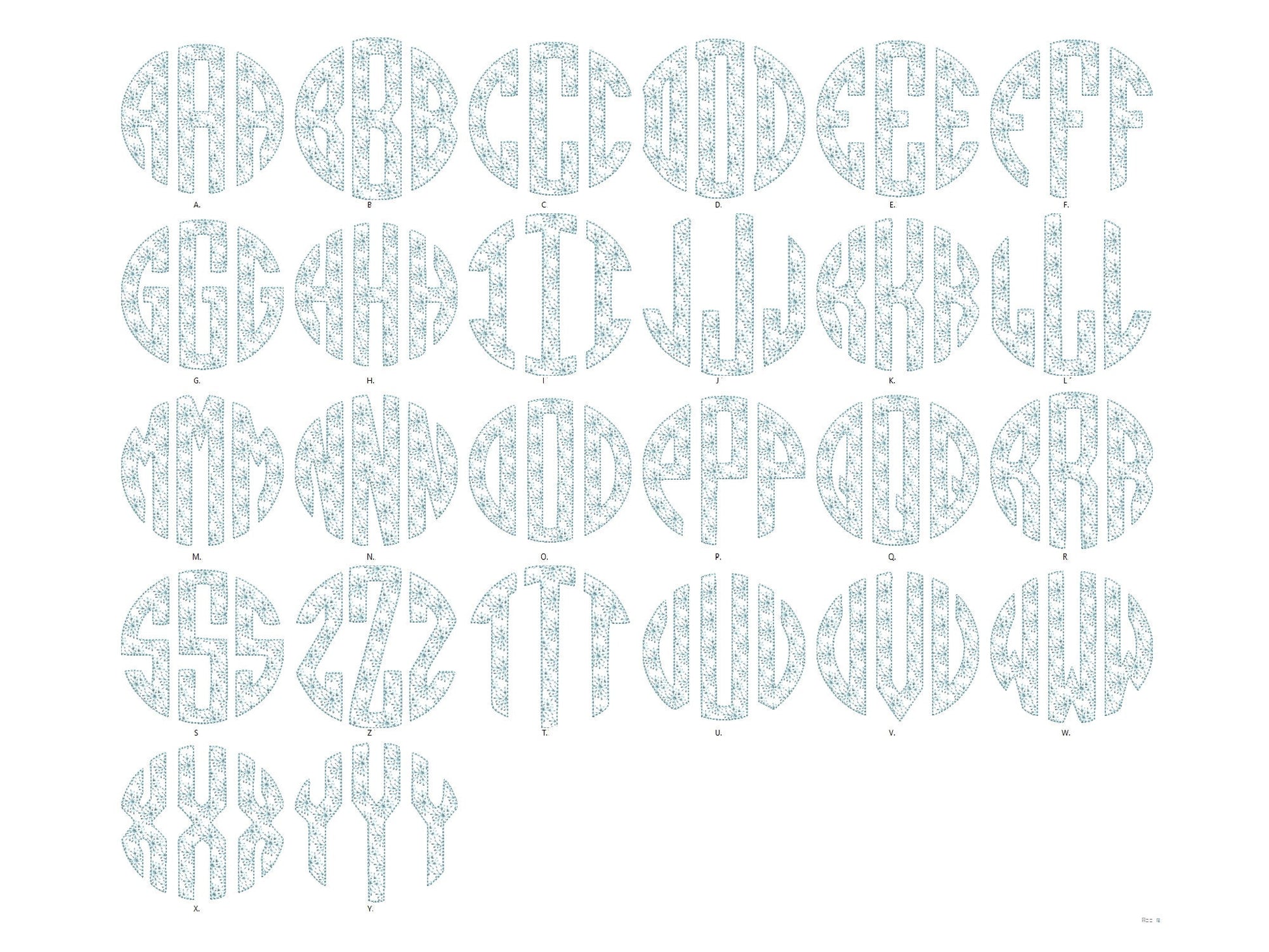 Snowflake Monogram A-Z, awesome winter frozen snow three letters circle monogram machine embroidery designs assorted sizes, Included 78 individual files. Light sketch outline Stitchwith a snowflake design.