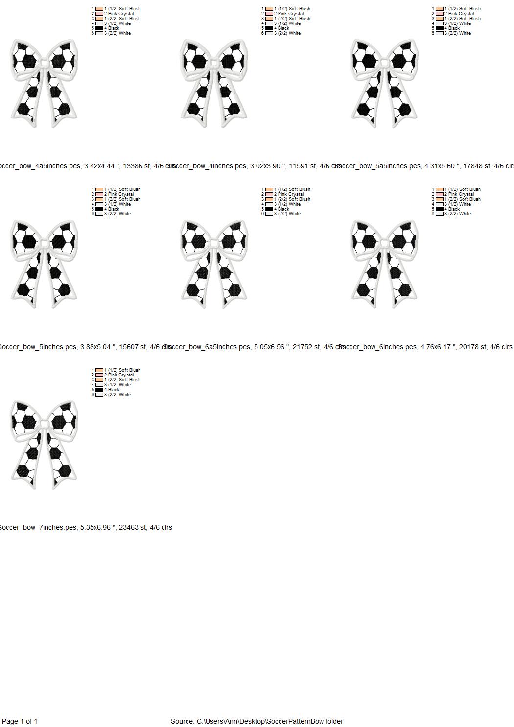 Soccer Ball side seam Bow Applique machine embroidery designs ribbon Sports Girly t-shirt sweatshirt split seam side bow coquette Style
