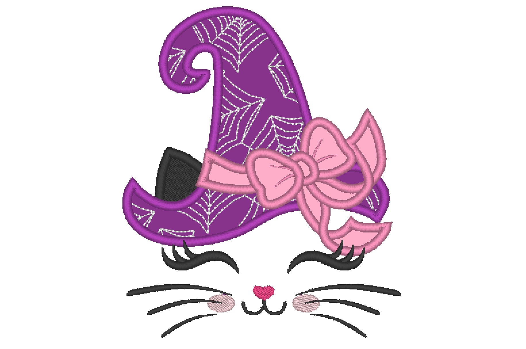 Spider web Witch Cat Embroidery Design, kitty Halloween witch hat witchy spooky Pretty eyes cat applique machine embroidery designs