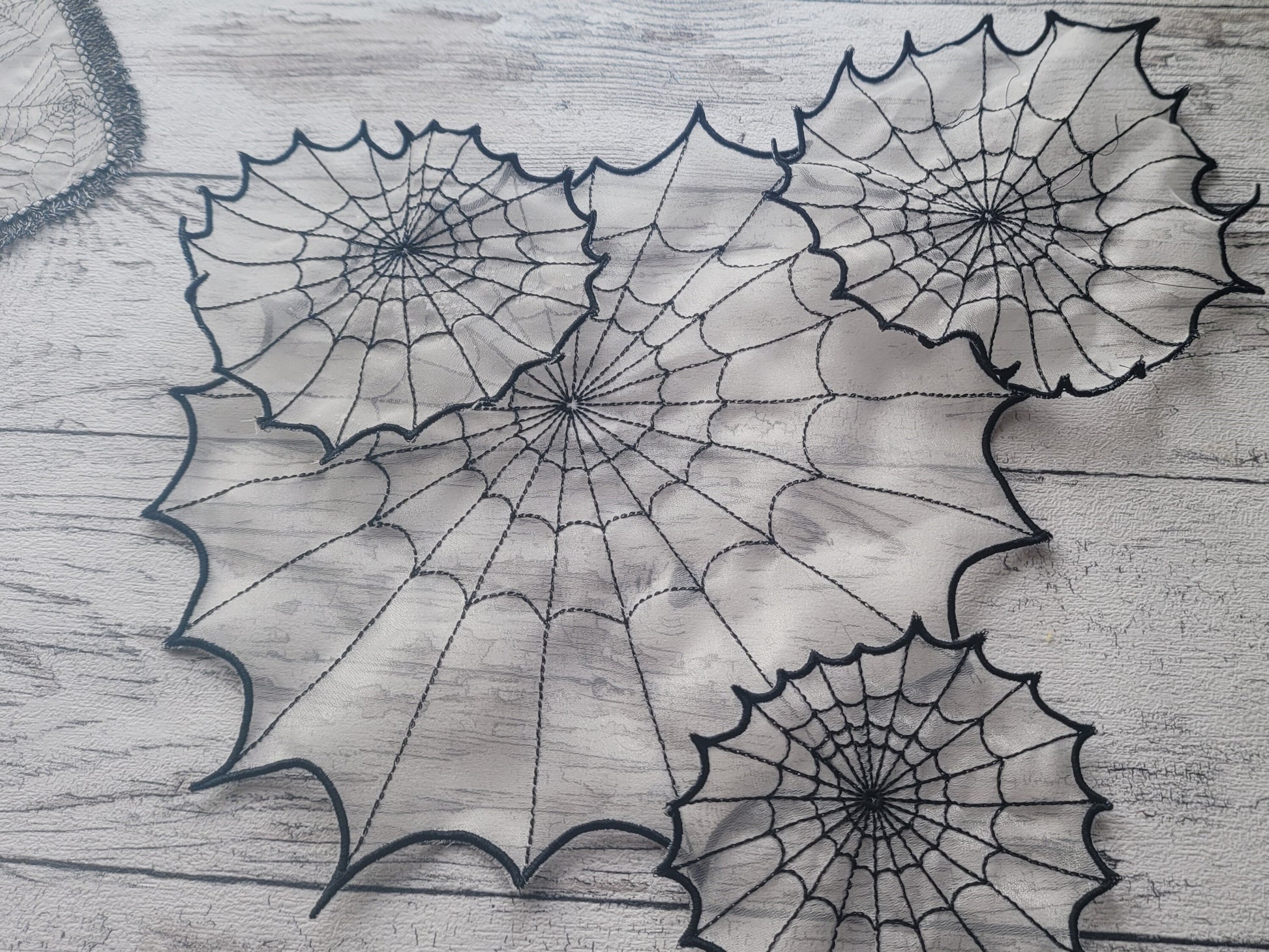 Spiderweb Halloween Napkins napkin doily coaster easily ITH in the hoop machine embroidery designs Spider Web sweet home kitchen decoration