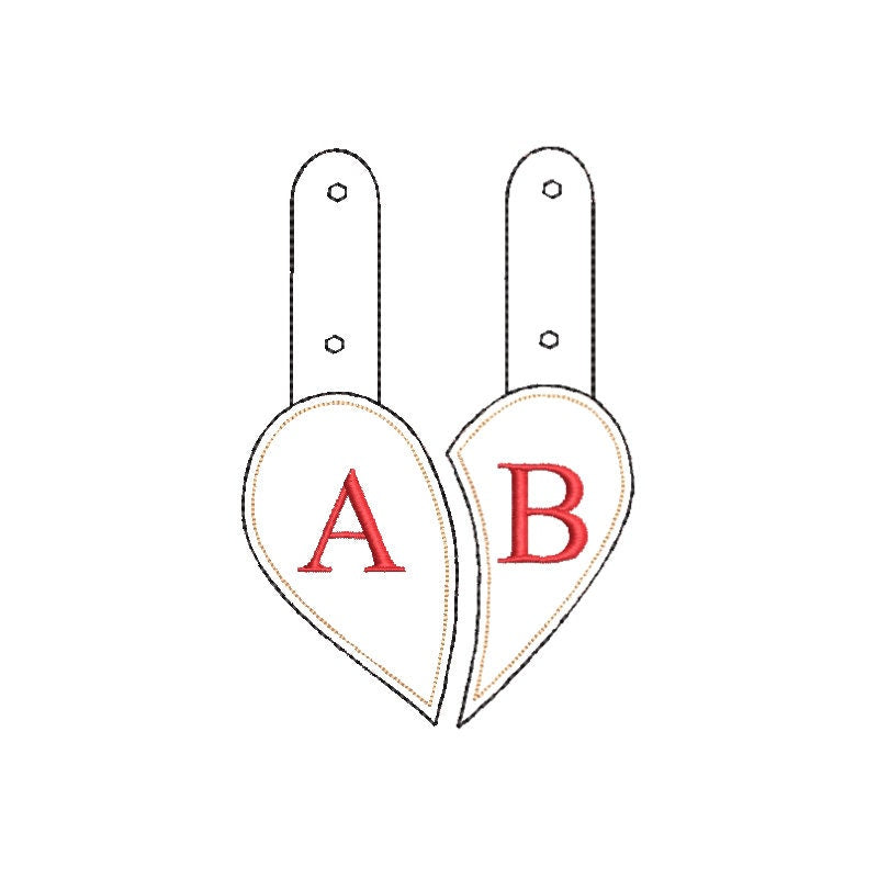 Split Heart Puffy puff 3d foam Pair Heart for couple Key fob snap tab monogram in the hoop ITH bag tag keychain machine embroidery designs