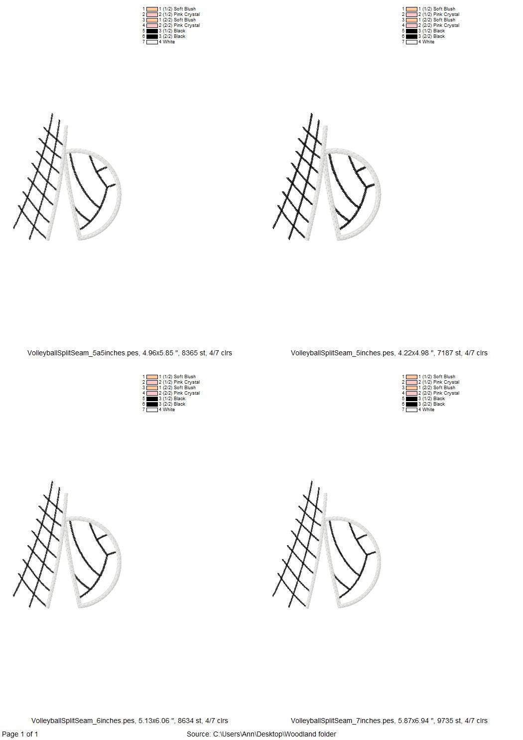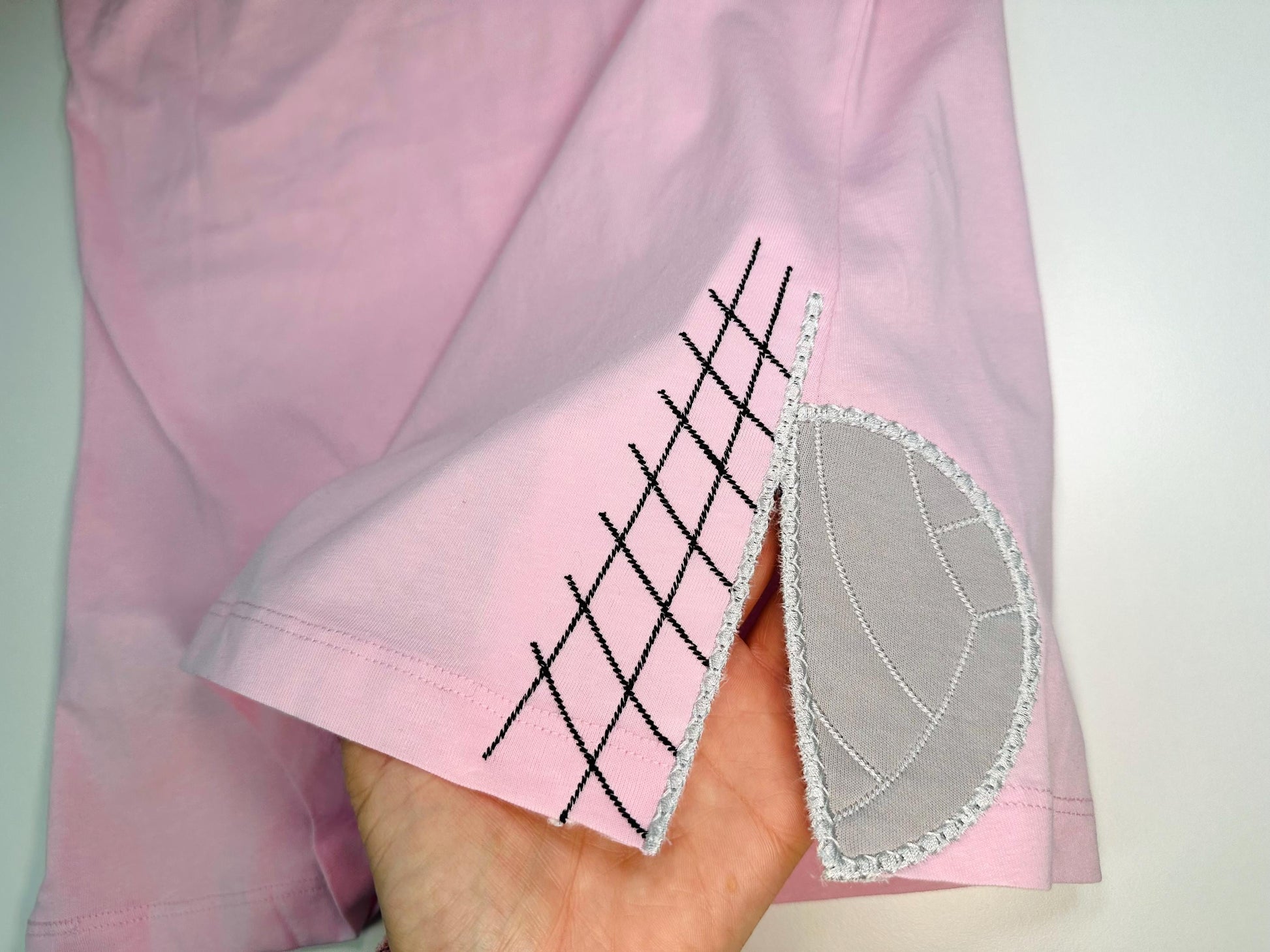 Sports Volleyball split seam side bow Applique machine embroidery designs kids outfit t-shirt sweatshirt design sizes 5 to 7 inches
