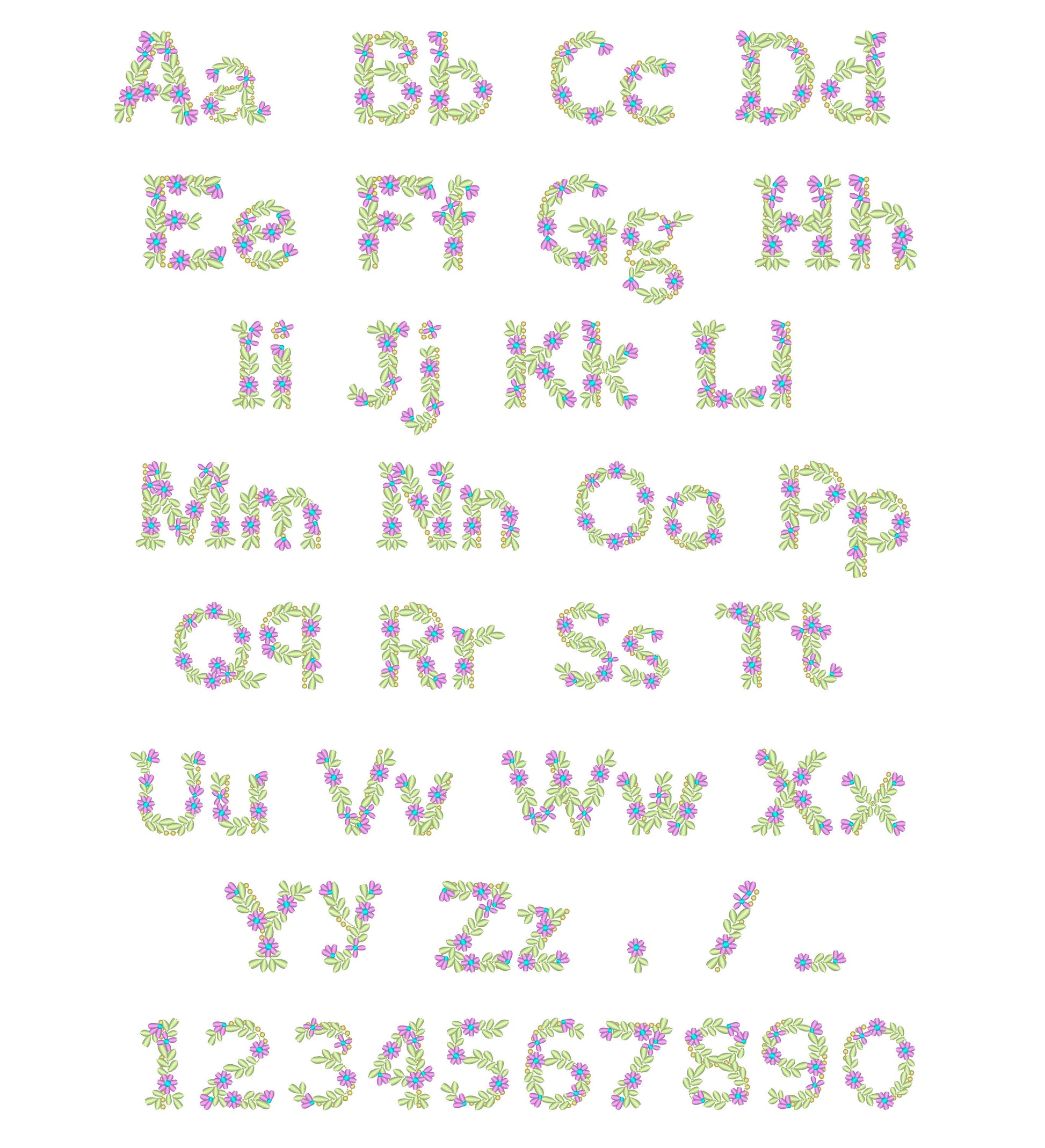 Spring Floral Font Flowered alphabet uppercase lowercase letters numbers machine embroidery designs BX font for kids MINI font from 1.5"