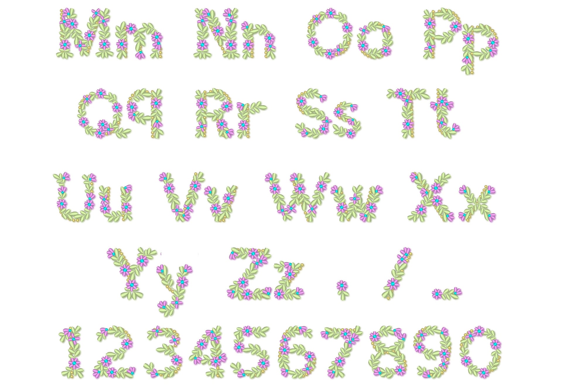 Spring Floral Font Flowered alphabet uppercase lowercase letters numbers machine embroidery designs BX font for kids MINI font from 1.5inch