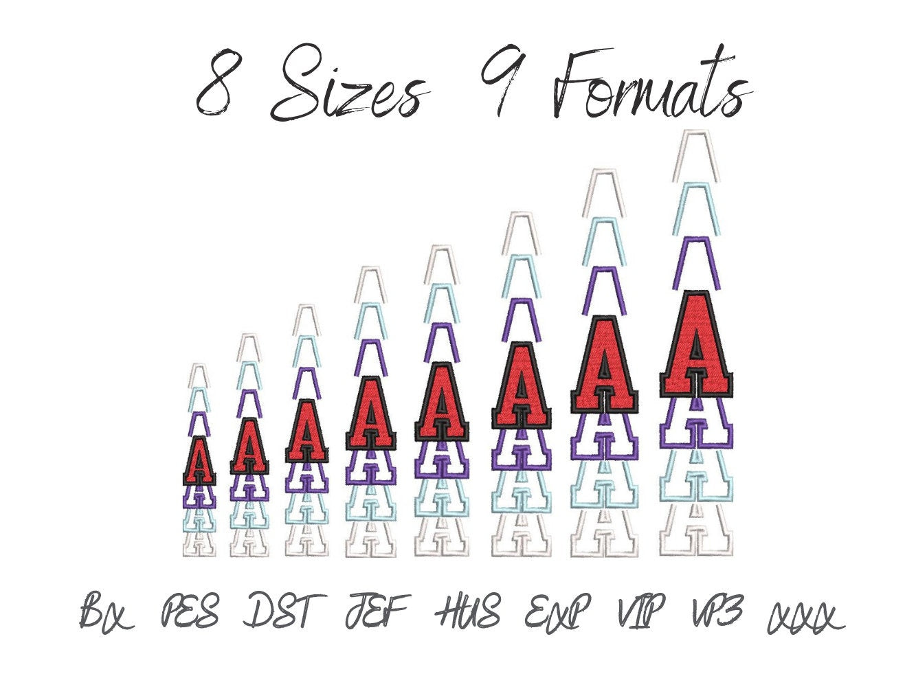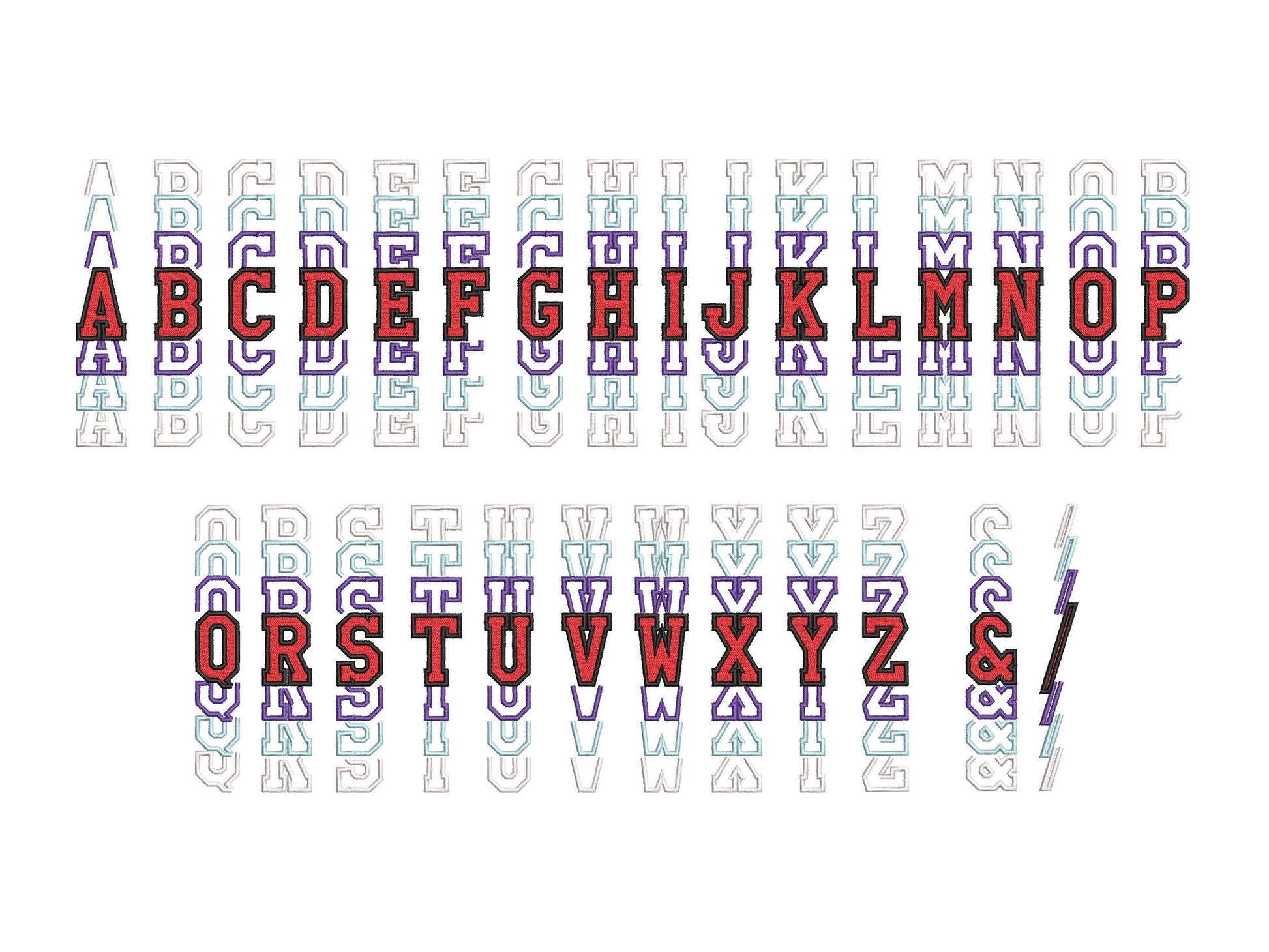 Stacked Font Athletic Sport, fill stitch and outline alphabet letters, boy trend Font fabulous machine embroidery designs many sizes BX incl
