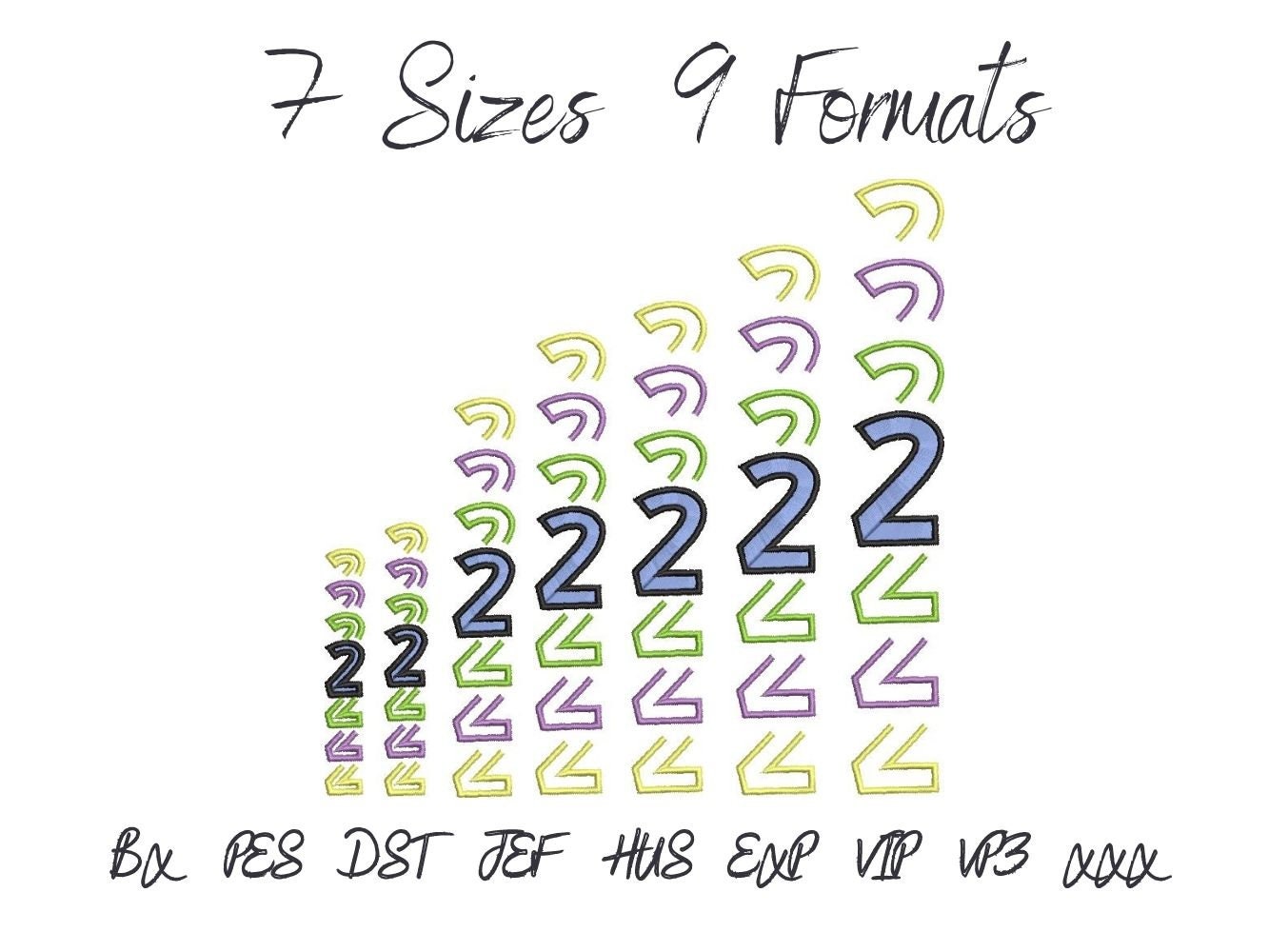 This download includes machine embroidery designs in the sizes: 3", 3.5", 5", 6", 6.5", 7", 8".