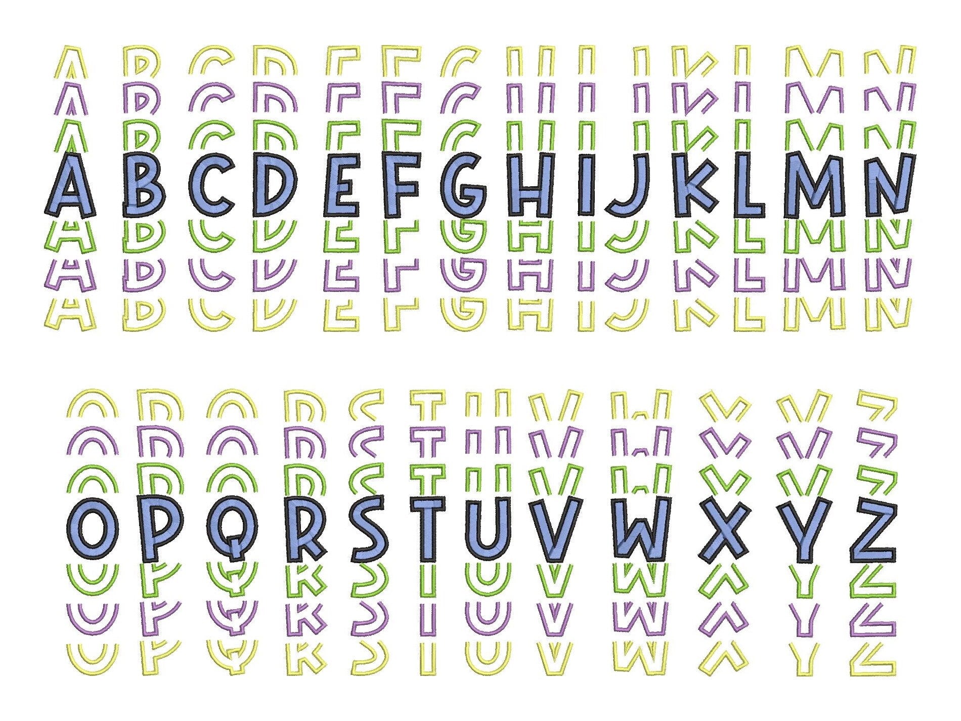 Satin Stitch and Outline Stacked Font