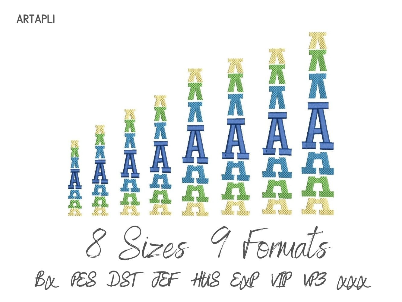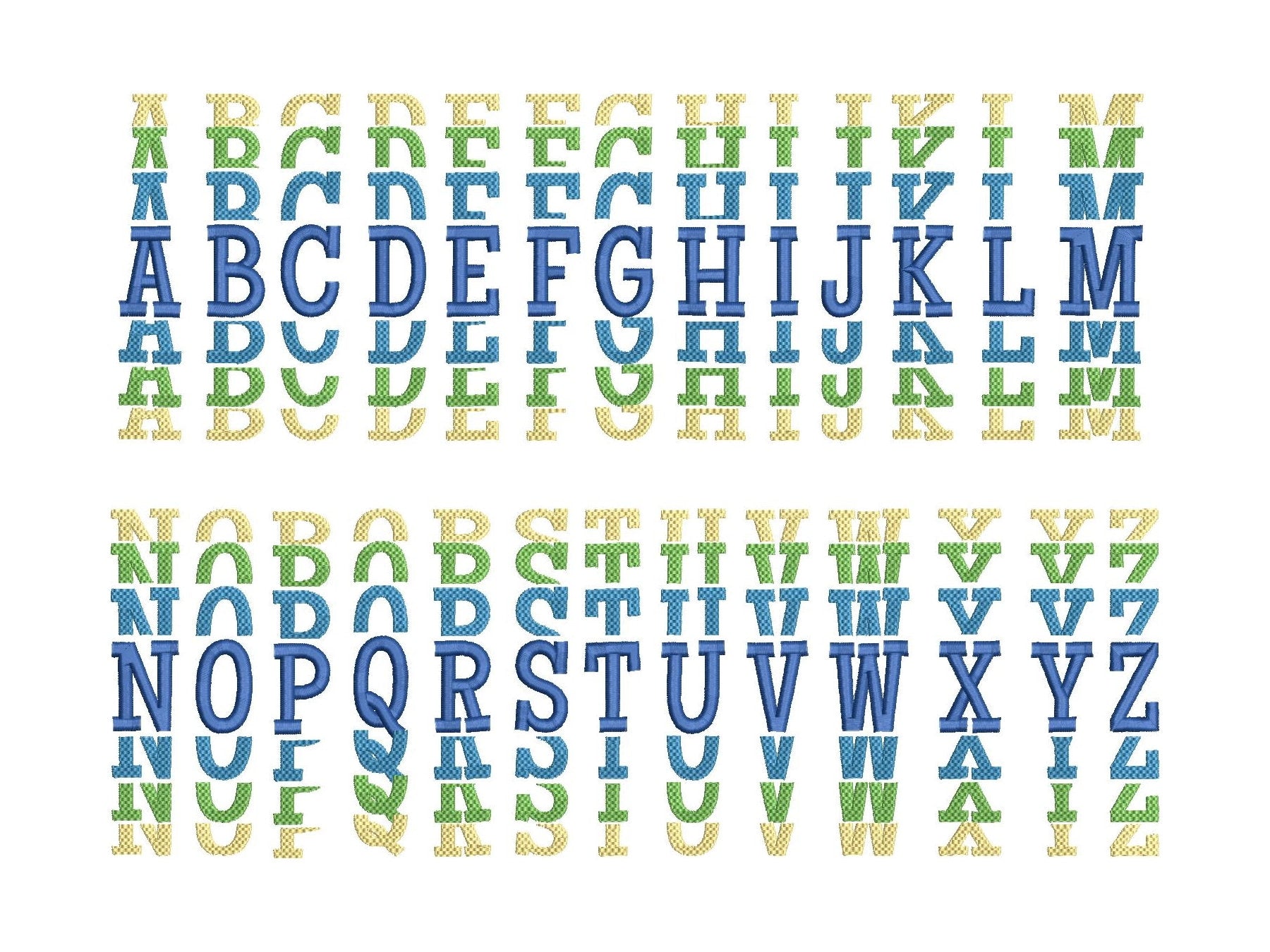 Stacked Font, satin stitch and fill trend alphabet letters, awesome kids name any word machine embroidery designs assorted sizes, BX incl
