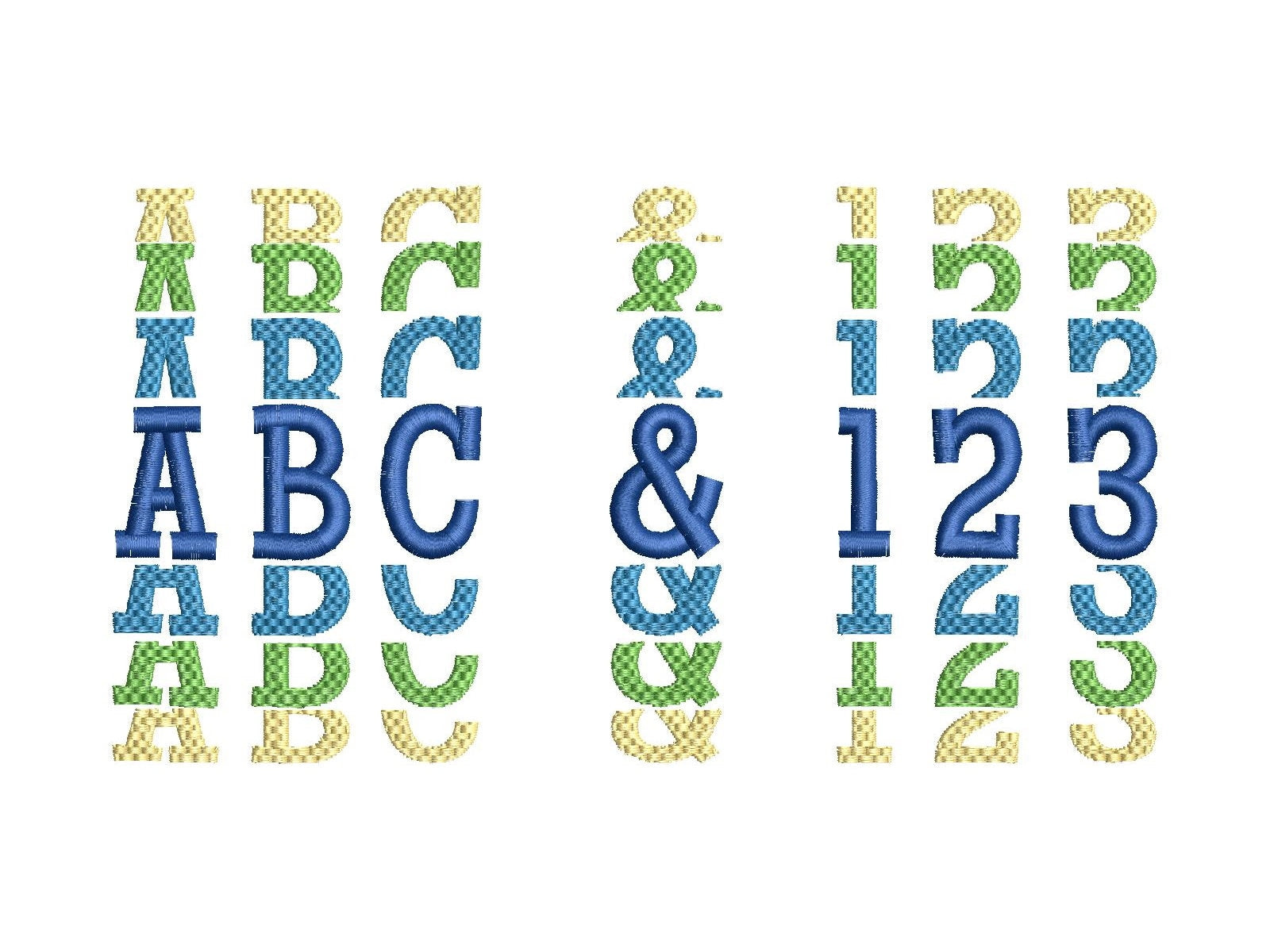 Stacked Font satin stitch and fill trend alphabet letters awesome kids name any word machine embroidery designs assorted sizes, BX included
