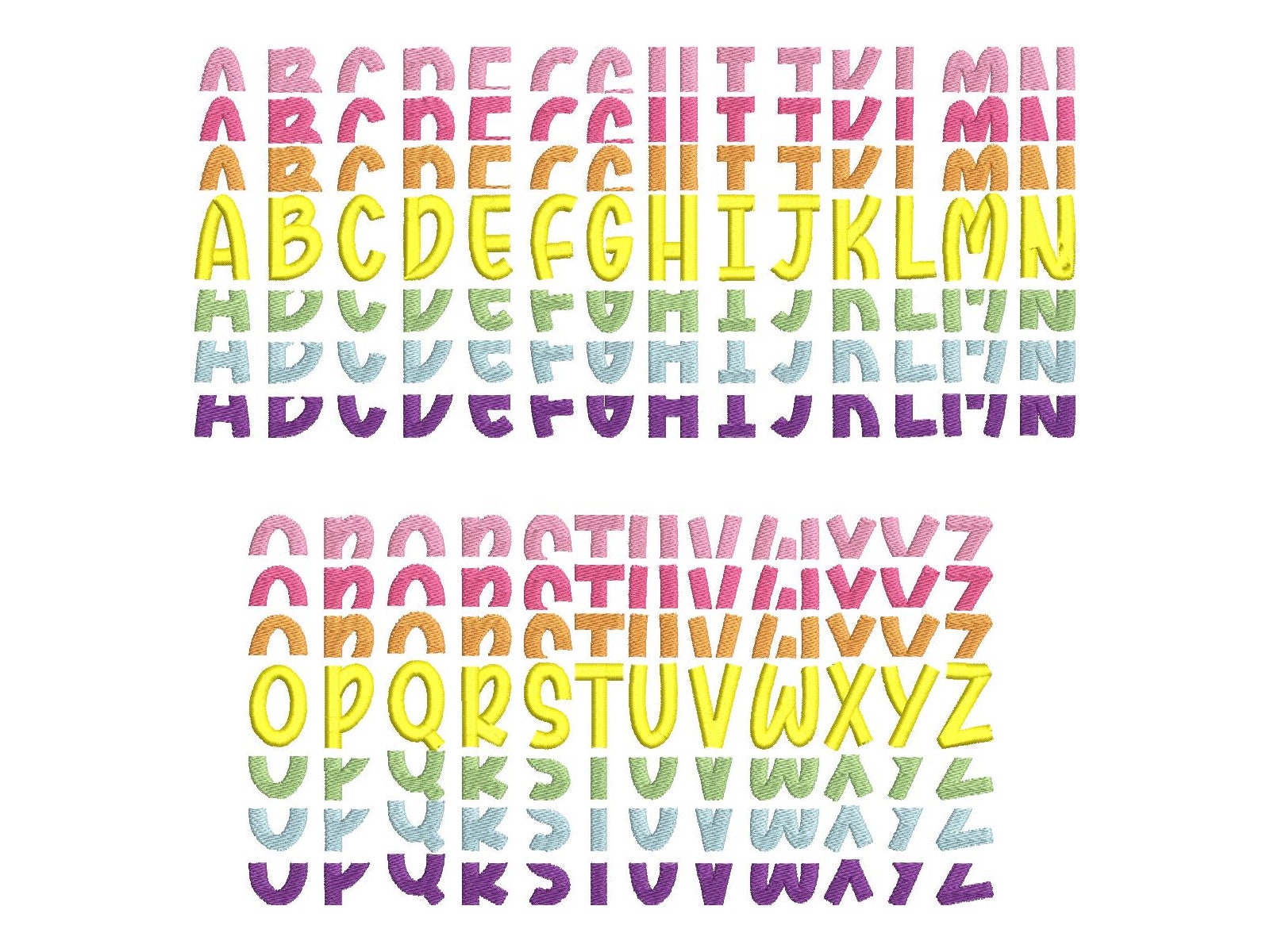 Stacked Font, satin stitch and fill trend alphabet letters, awesome kids name letters machine embroidery designs assorted sizes, BX incl