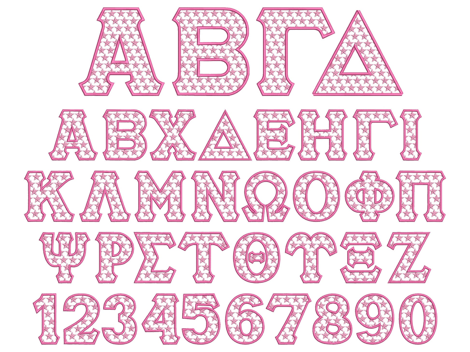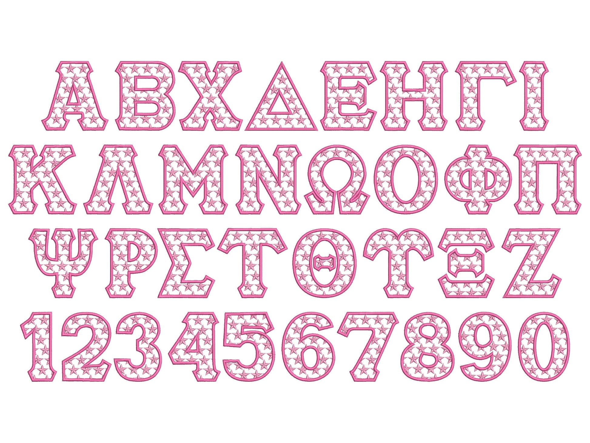 Starry Greek Font 2 Color Monogram Fraternities Sororities Greek font alphabet machine embroidery designs 24 alphabet letters and numbers