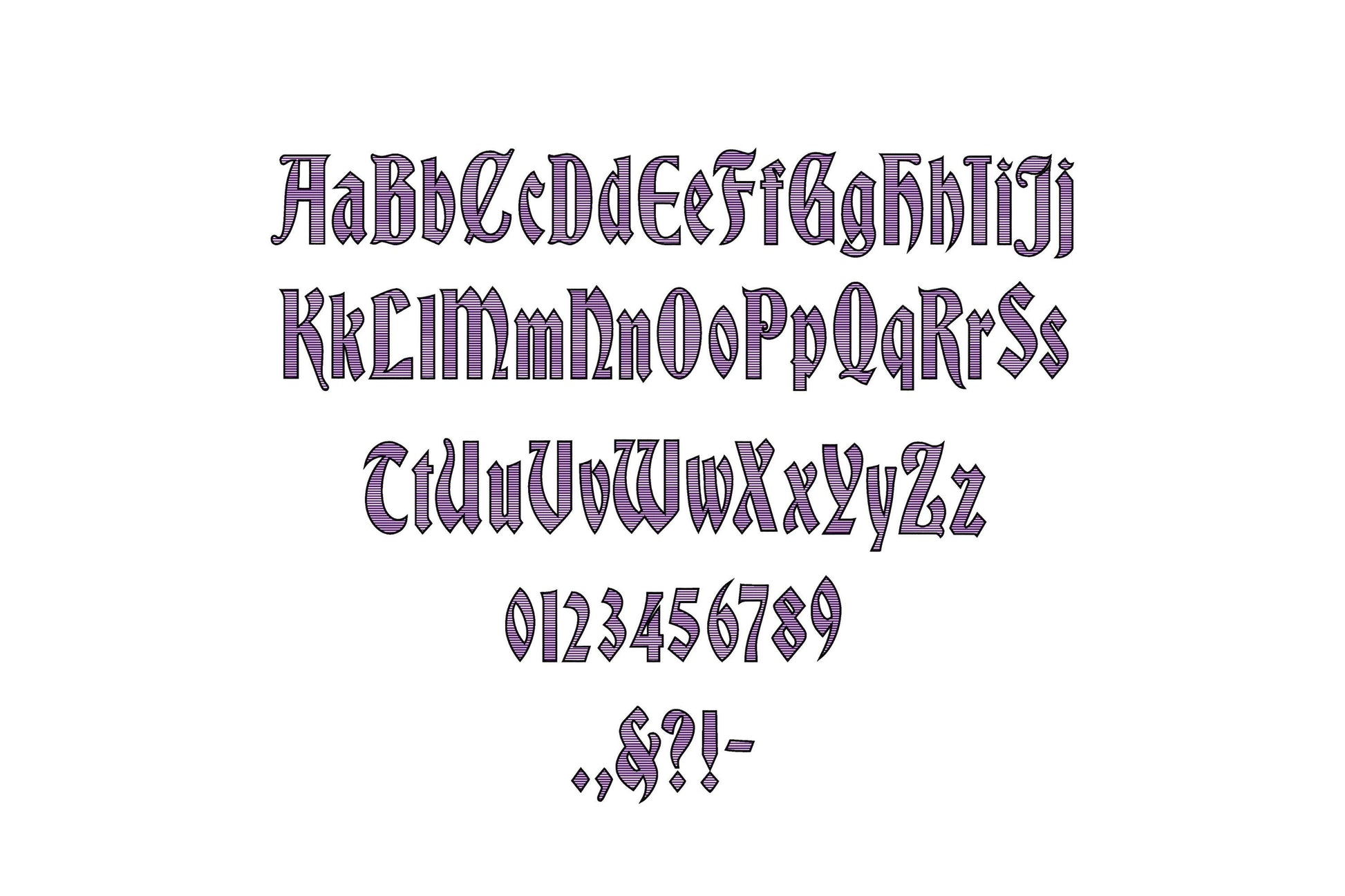 Striped Barber Old fashioned English Font satin stitch Gothic monogram alphabet monogram machine embroidery designs sizes 2 up to 6 inch BX