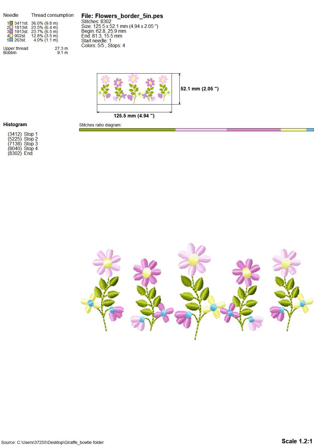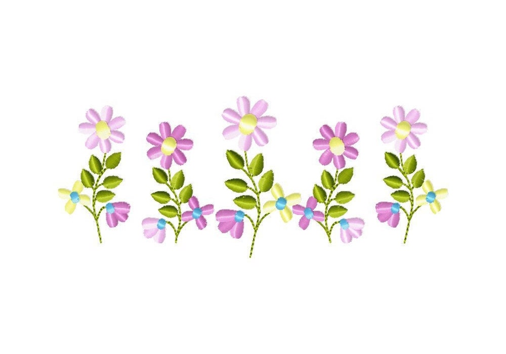 Summer Daisies 5 flowers in a row, floral line of 5 simple cute blossoms - machine embroidery designs size 4, 5, 6, 7" Sizes
