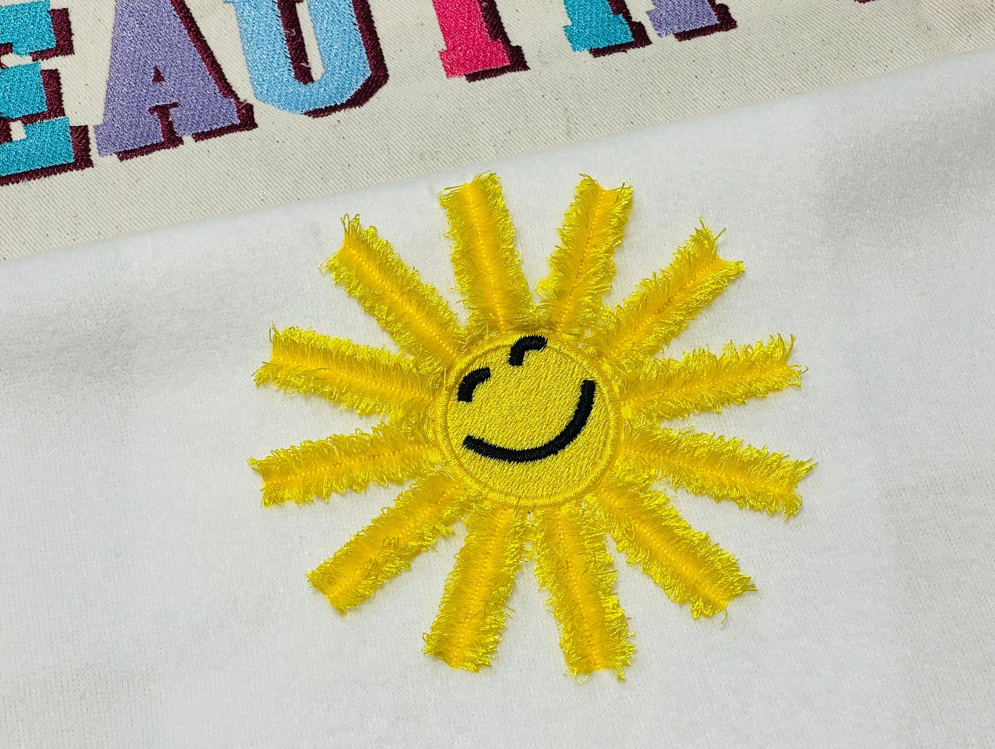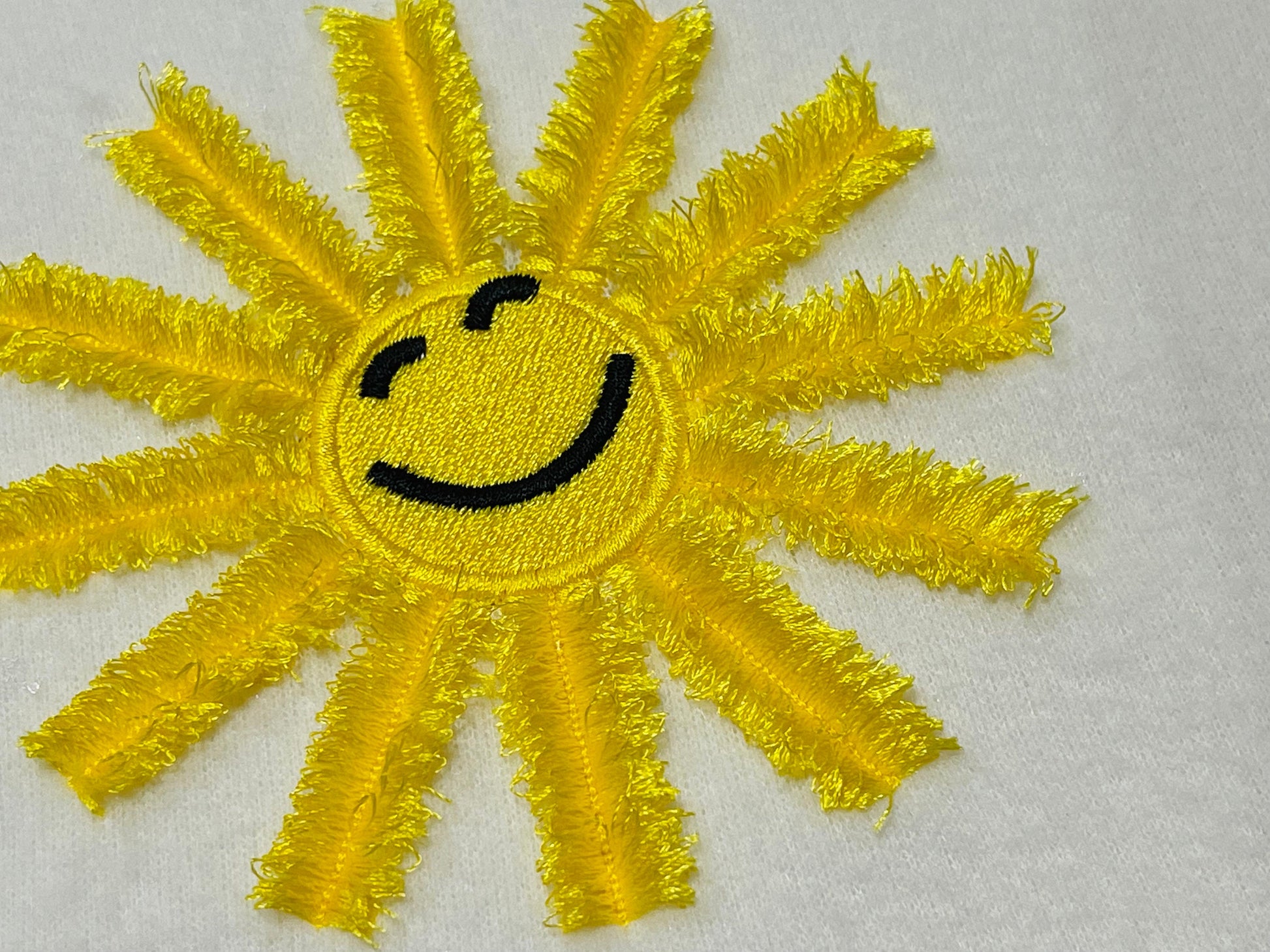 Sun, Fluffy fringed happy sun chenille awesome Fringed fluffy sun fringe ITH in the hoop machine embroidery designs
