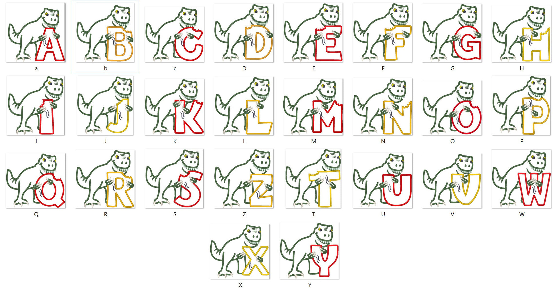 T-rex dinosaur Personalized name letter whole alphabet 26 letters