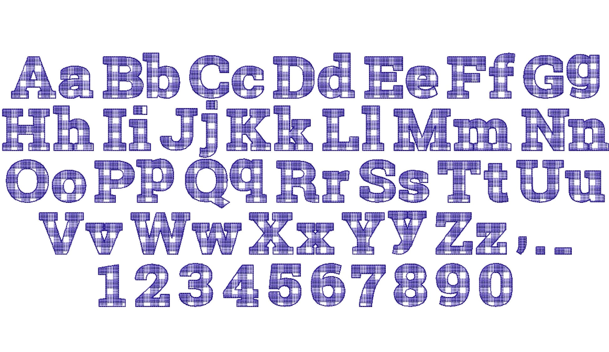 Tartan Plaid Gingham Christmas Font light sketch outline machine embroidery font alphabet letters 1.5, 2, 3 & 4 in BX, vp3, xxx, pes