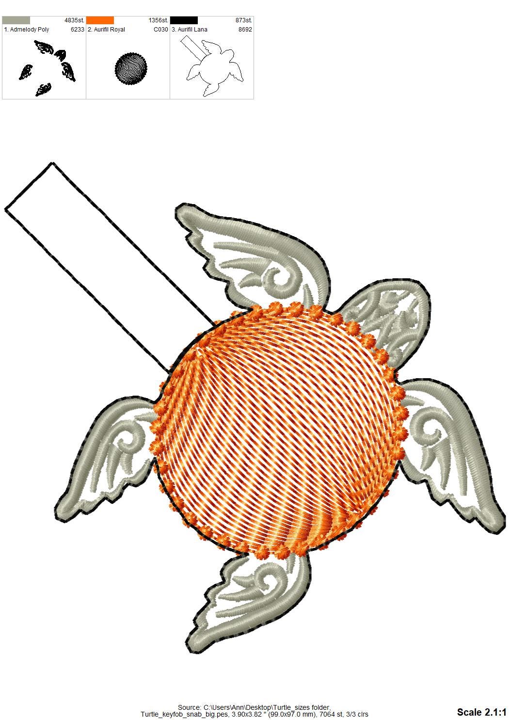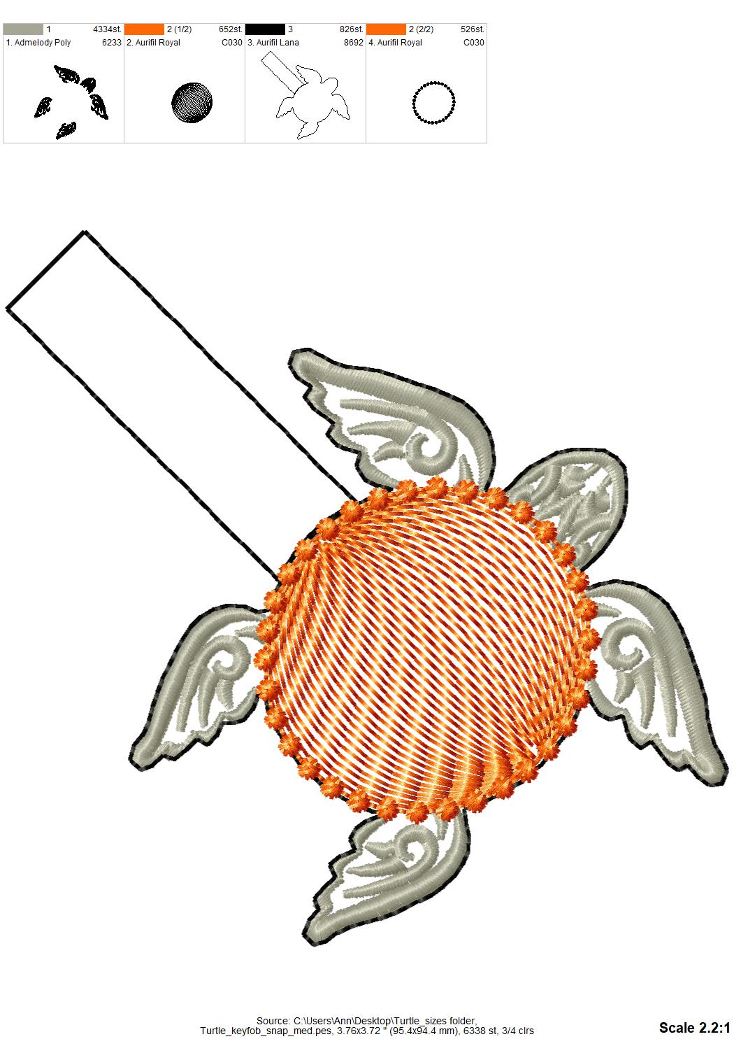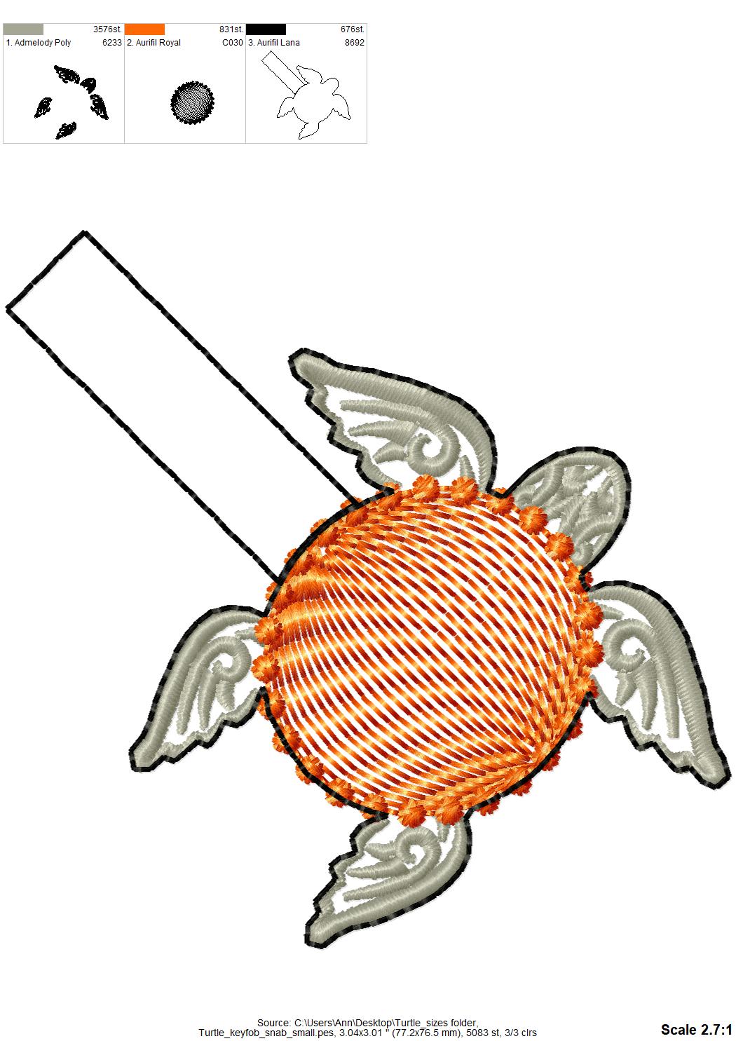 Turtle Snap Tab key fob, feltie, may use for circle monogram, mini machine embroidery design, in the hoop key fob embroidery project seaside Key fob is a digital embroidery design to create a key chain with an adorable shape.