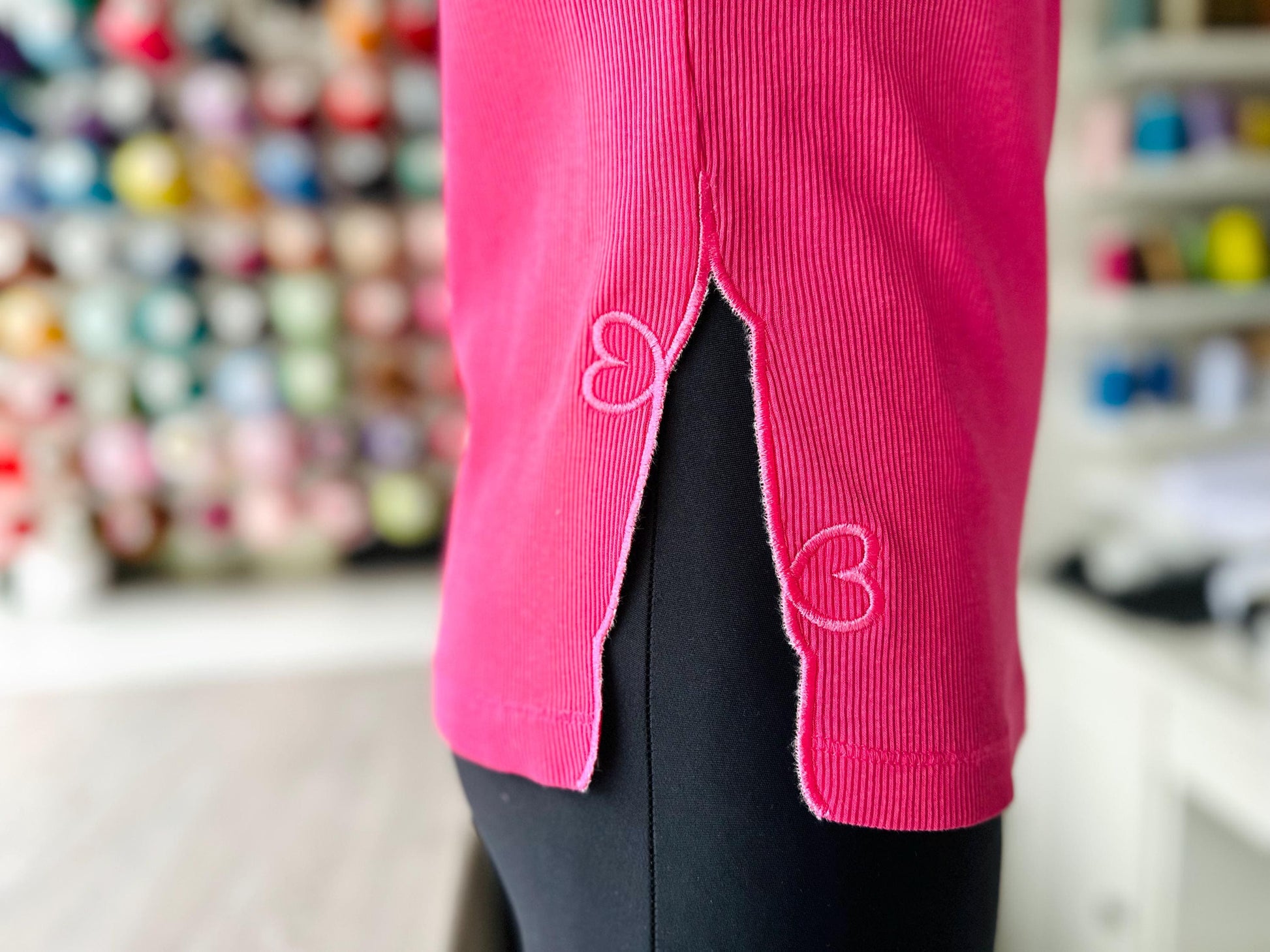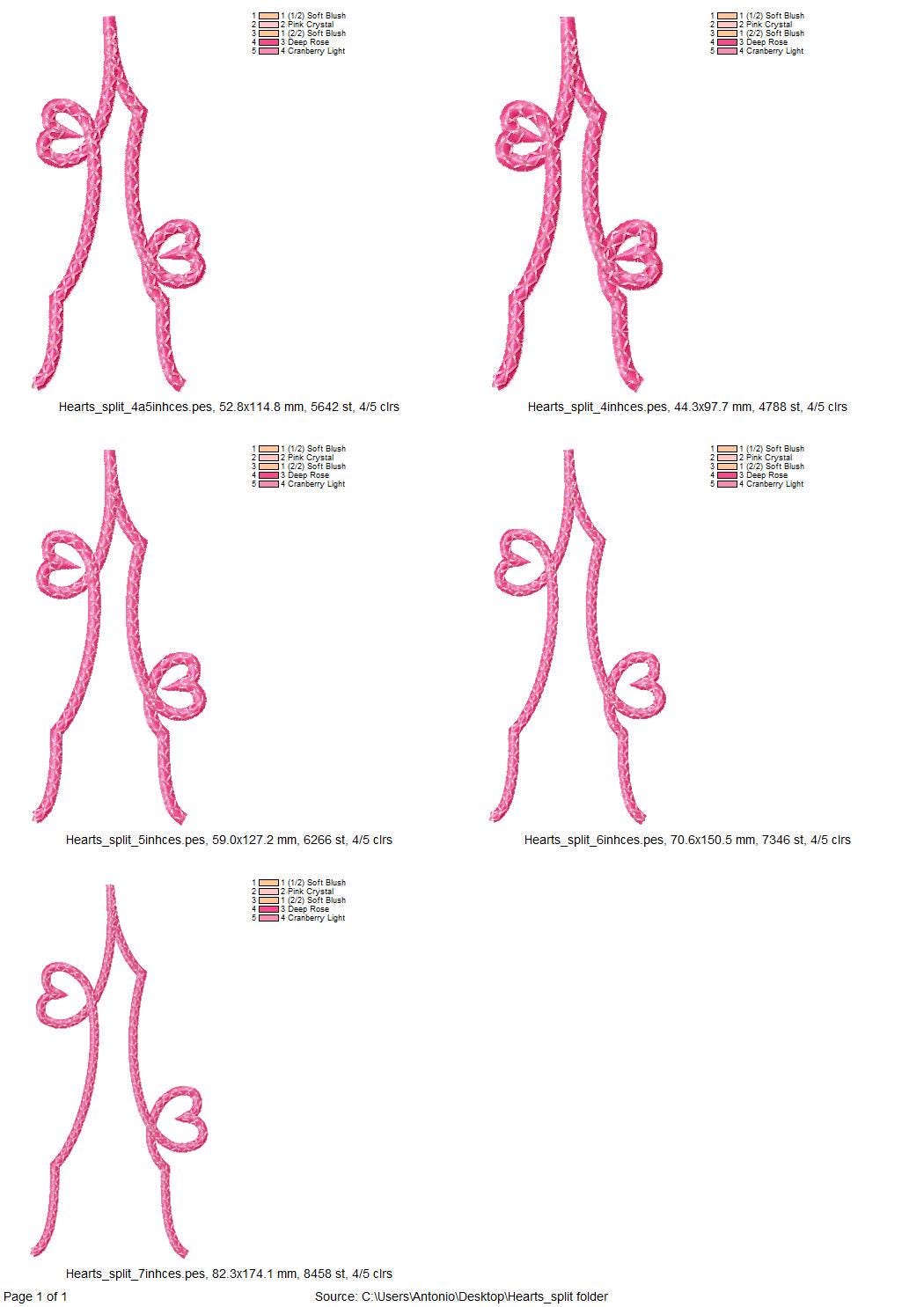 Two small Hearts split side seam cutout Side Bow machine embroidery