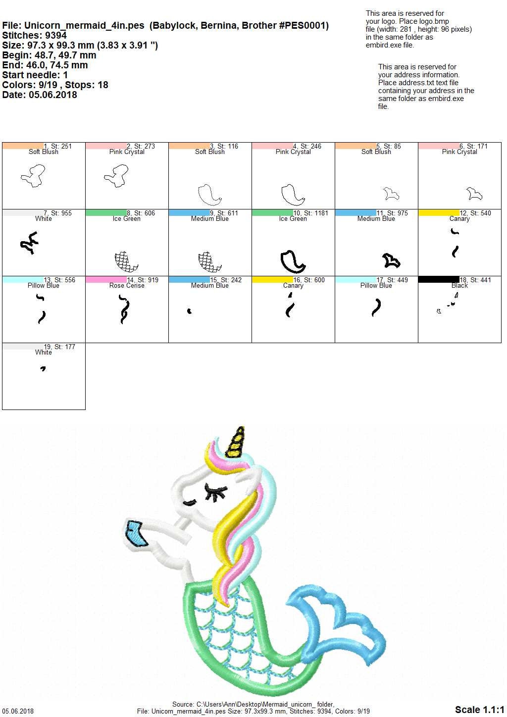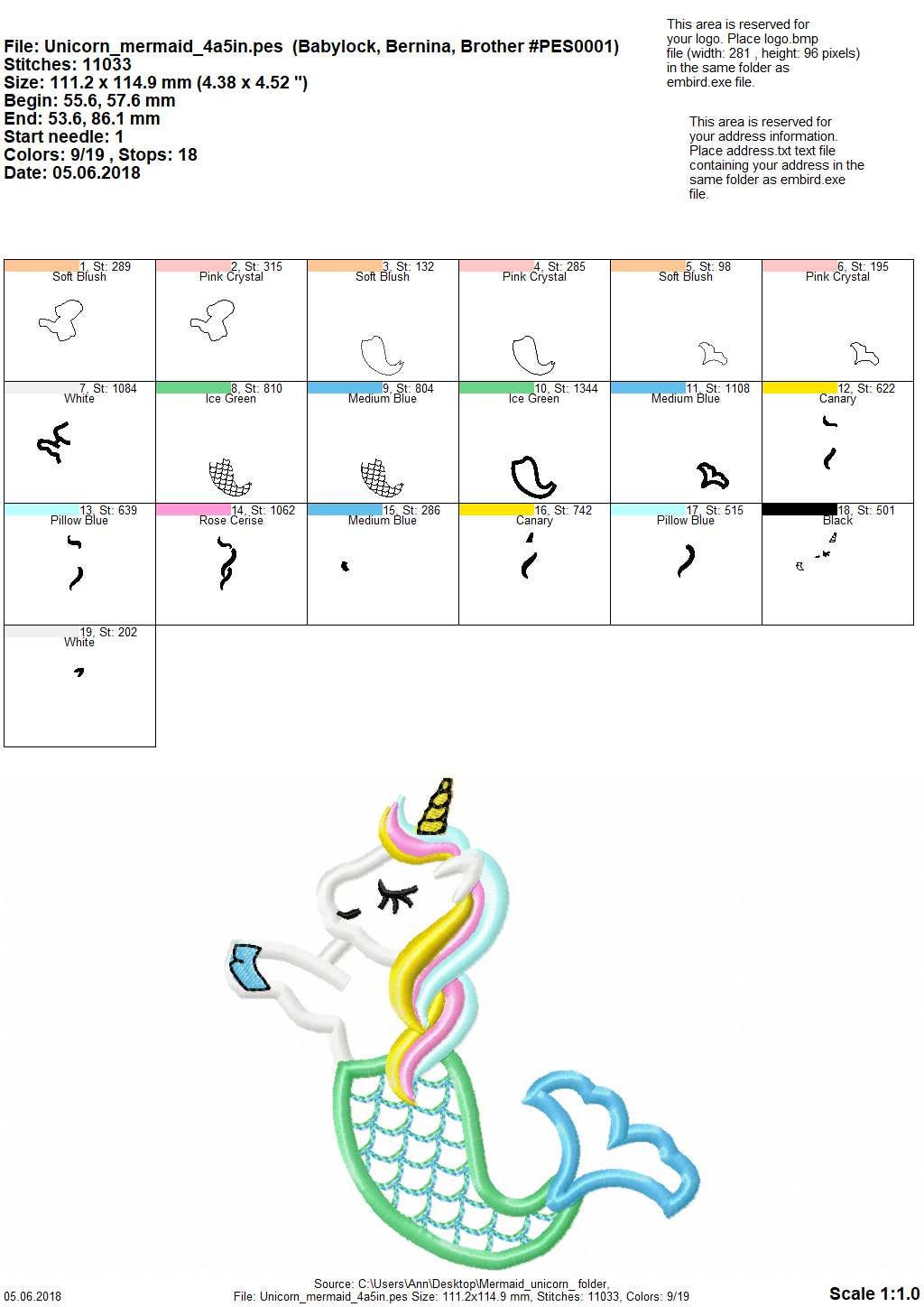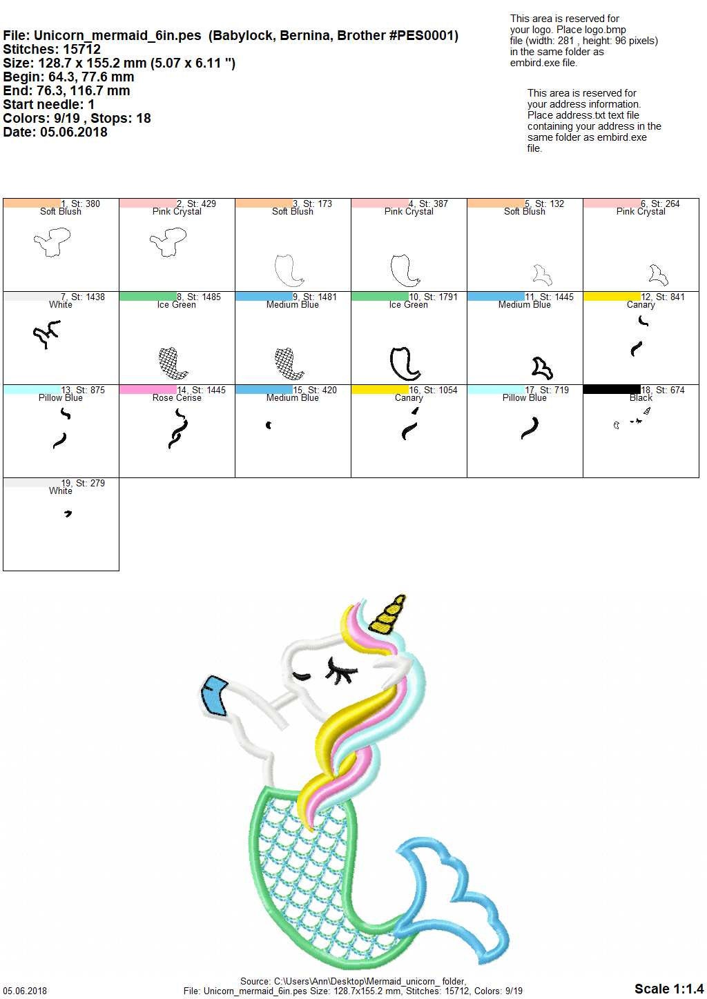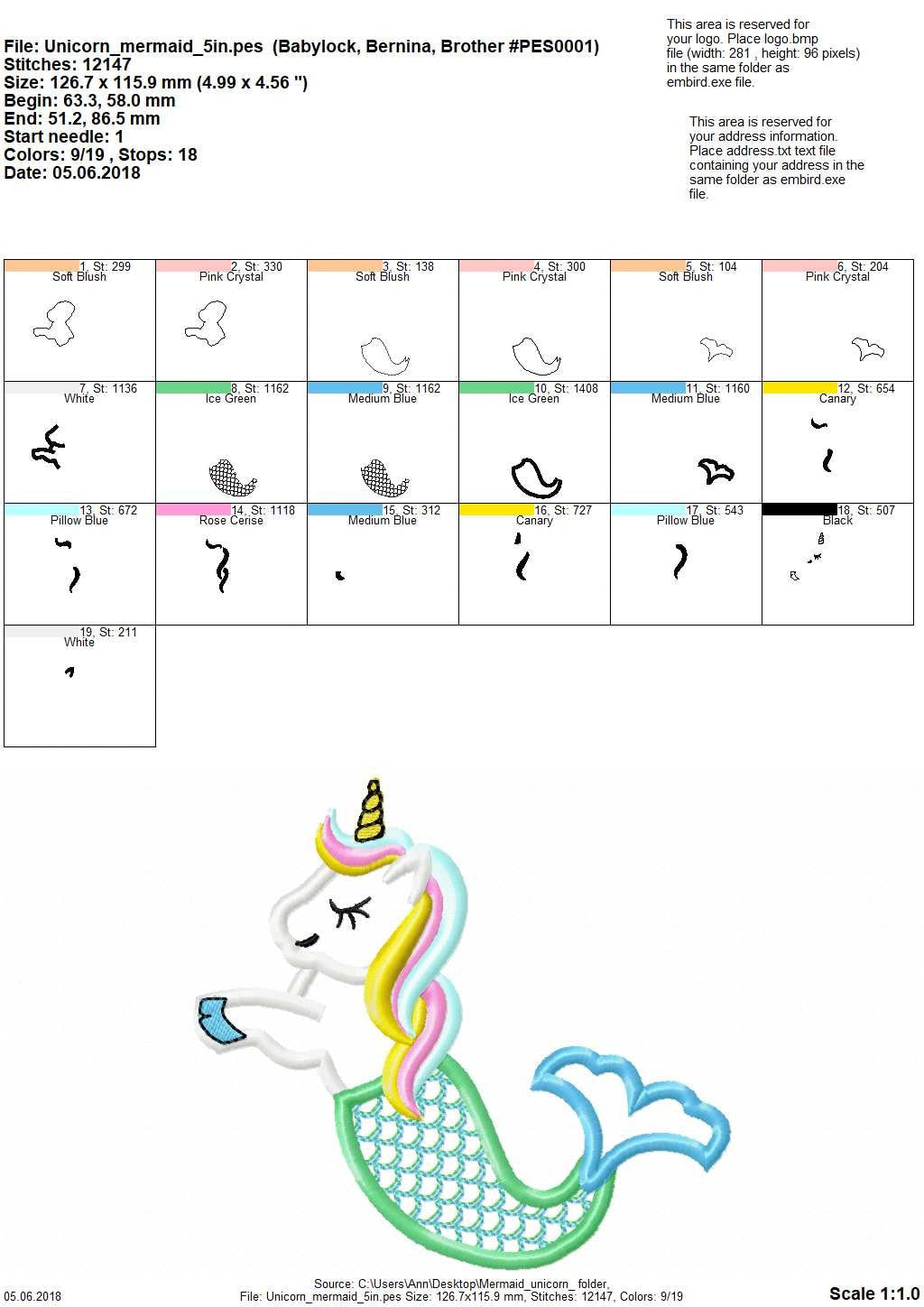 Unicorn Mermaid Mermicorn Cute T-Shirt applique machine embroidery design for hoop 4x4 5x7