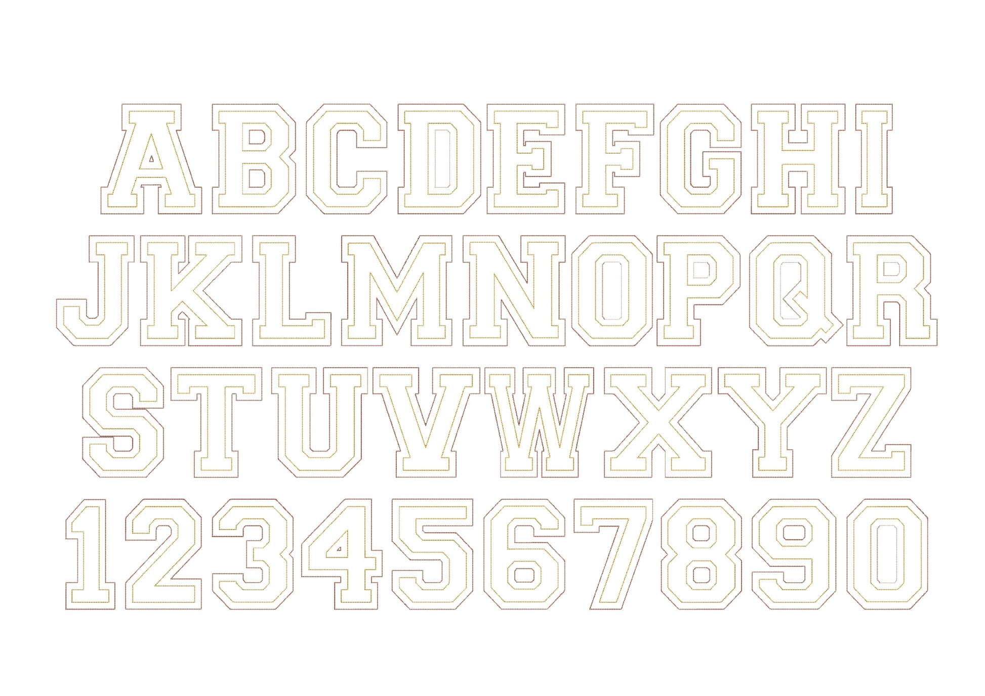 Varsity block sport glitter HTV vinyl simply applique Font machine embroidery designs monogram alphabet letters from 3 up to 7 inches, BX