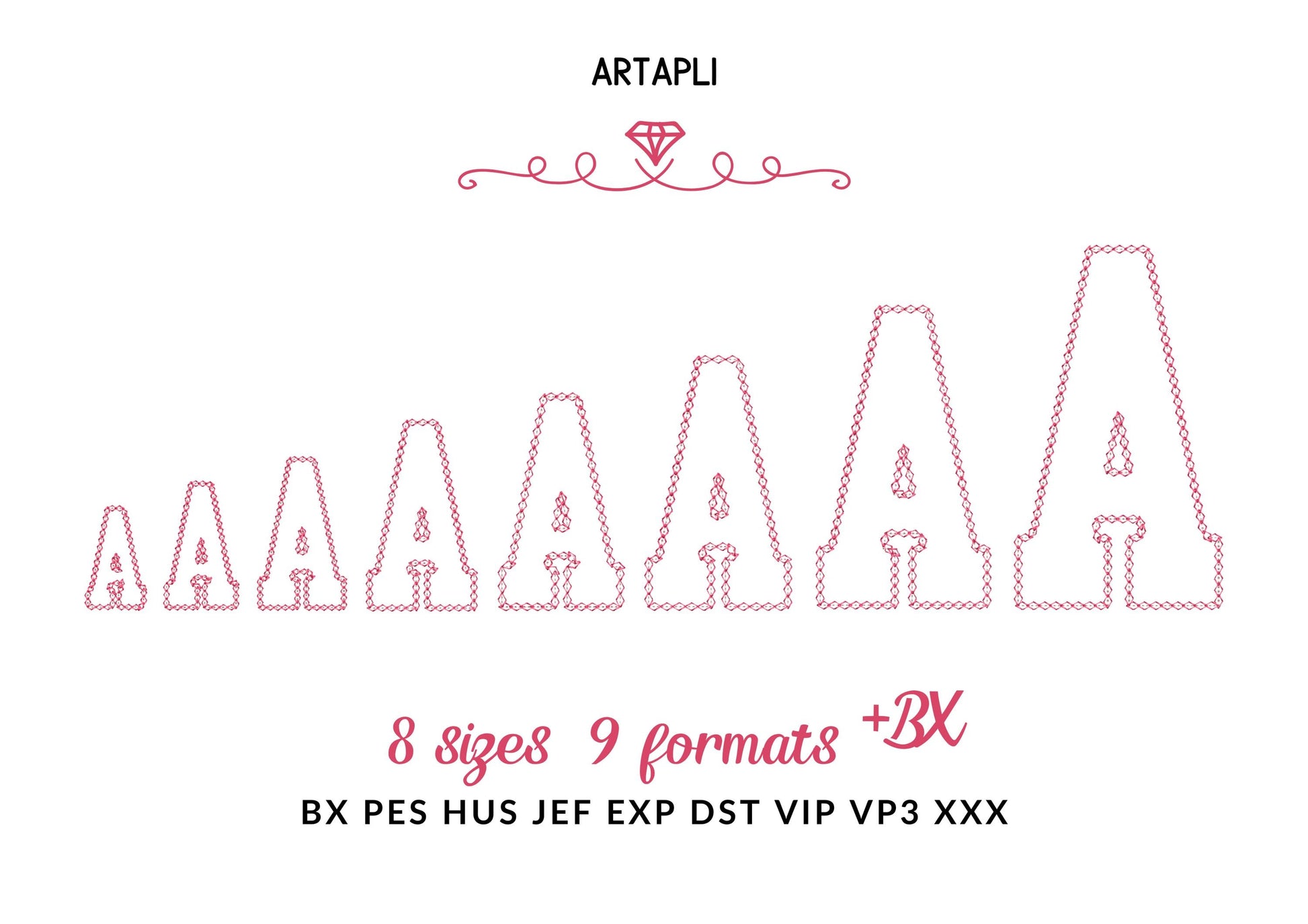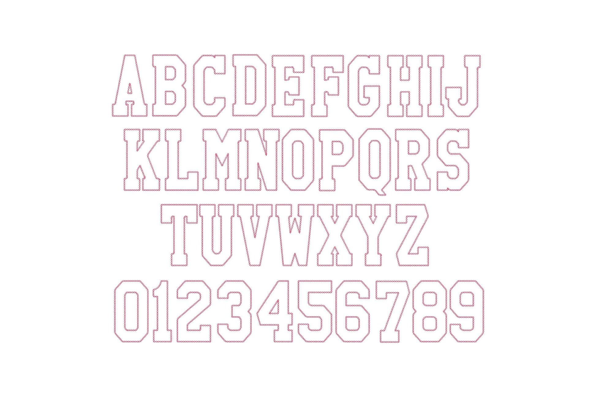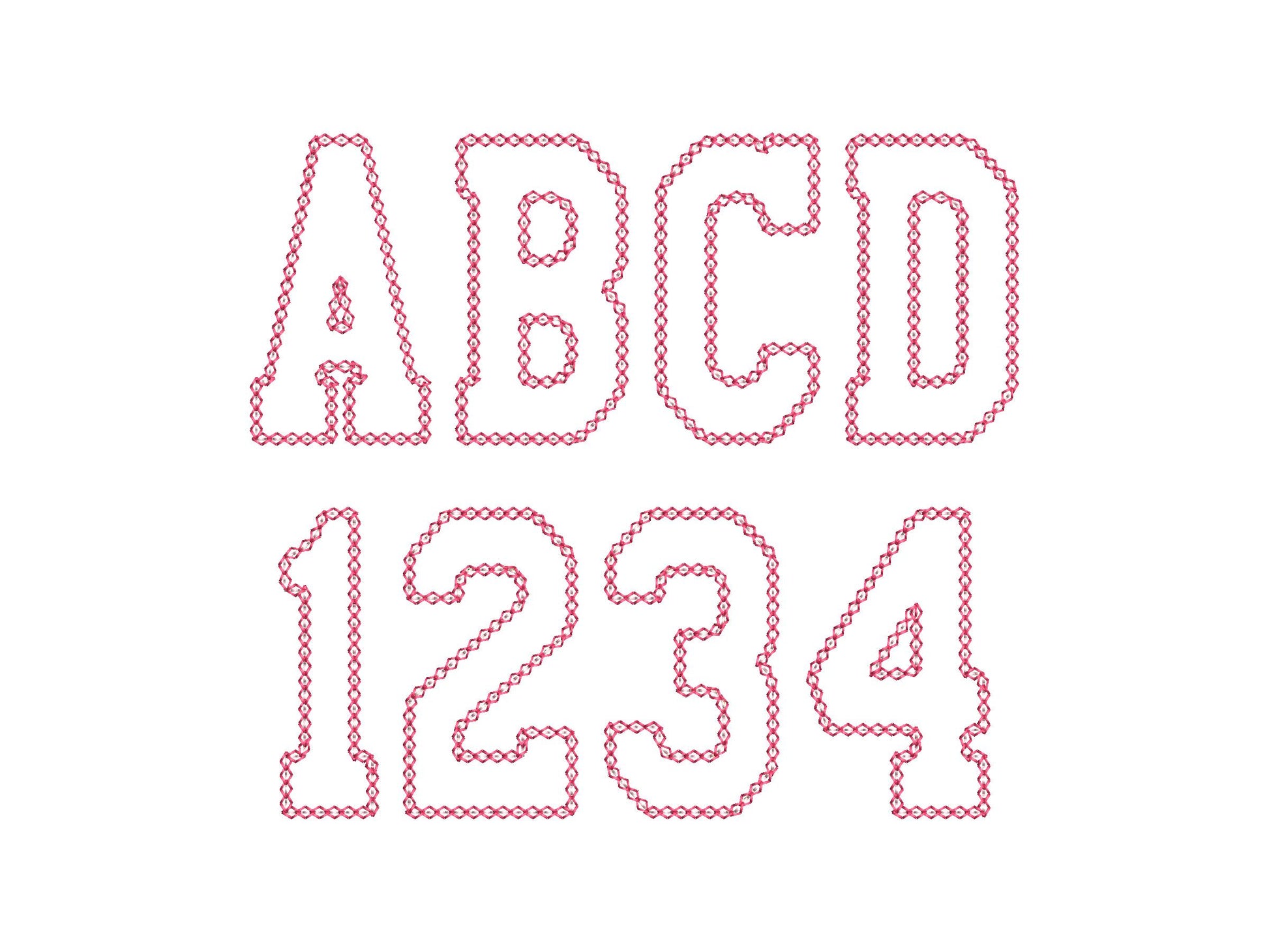 Varsity FONT Applique Diamond stitch outline machine embroidery designs block athletic monogram alphabet letters many sizes 1.8 up to 6.2in