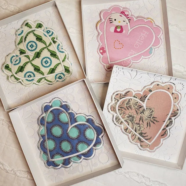 Wednesday dark style dolly old fashioned Valentine Heart Applique machine embroidery designs 2 layers applique festoon edge heart