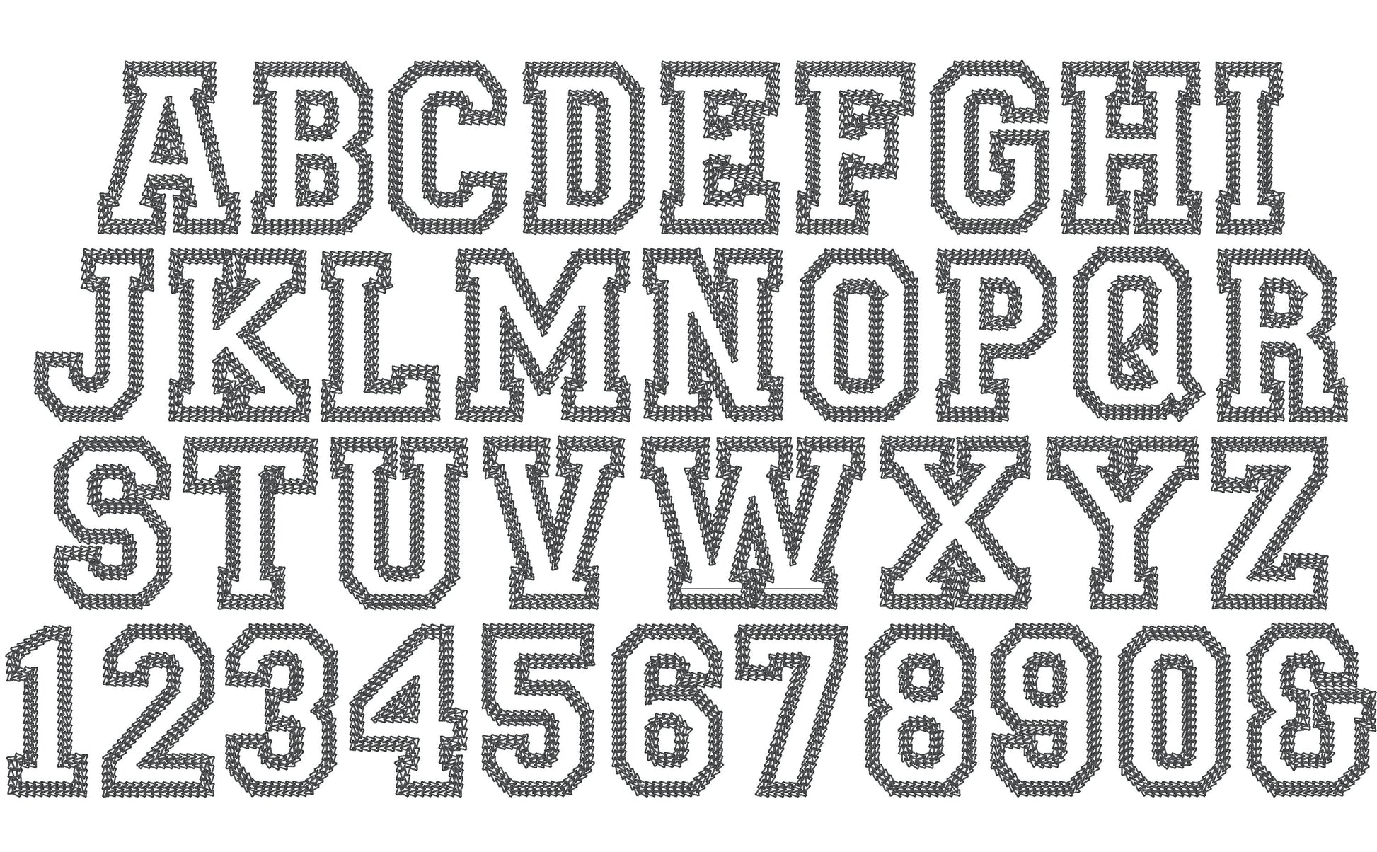 Wide Chain Stitch Outline Varsity Sport Athletic Collegiate Outline Font, Monogram Machine Embroidery Design