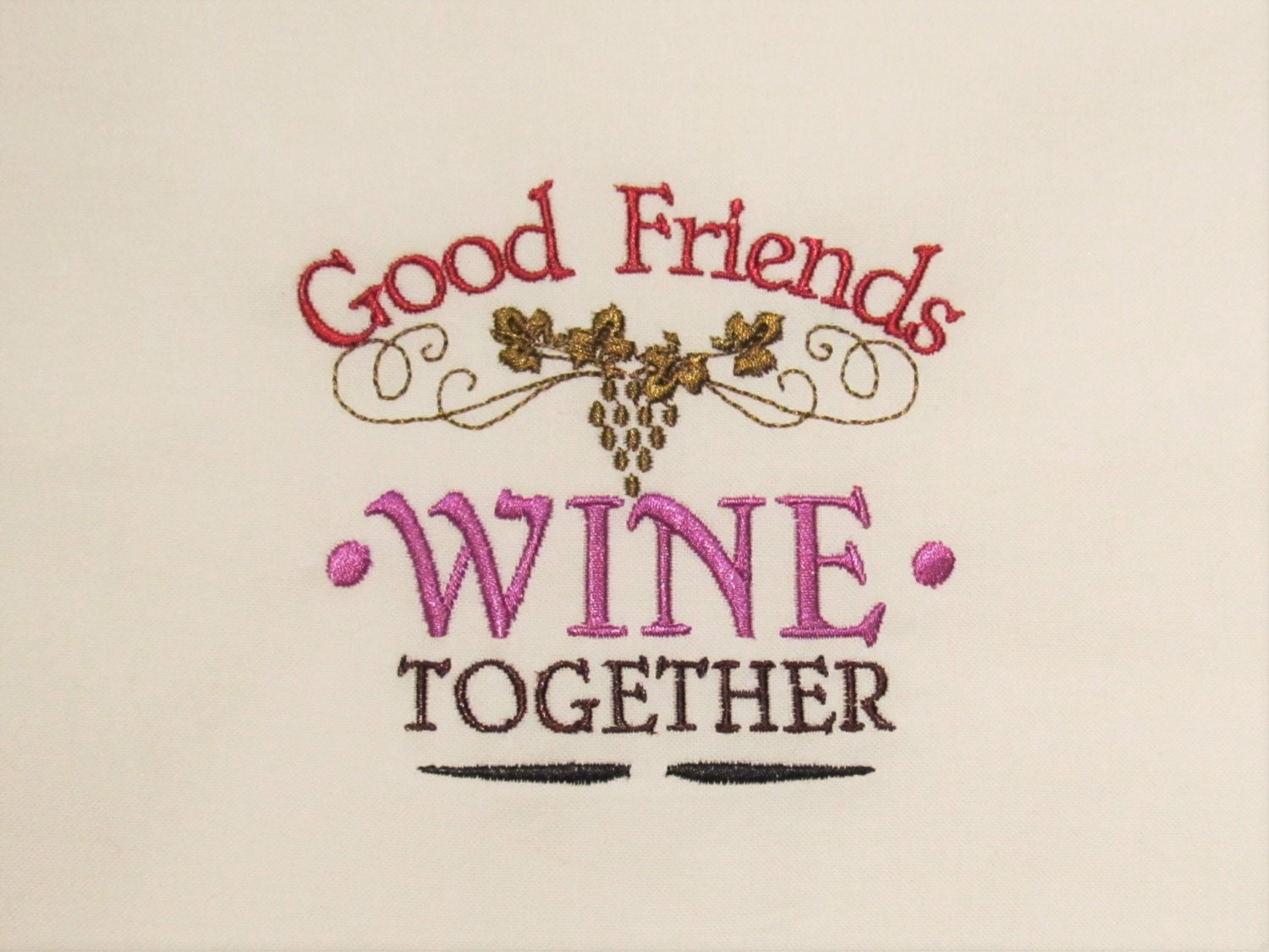 Wine and Friends quotes... Awesome gift for good friend dish towel decoration unique SET of 4 machine embroidery designs for hoop 4x4, 5x7 Sizes for hoop.